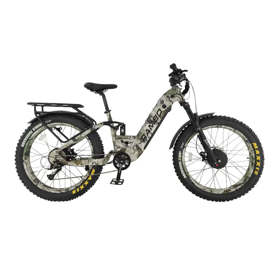 LET US INTRODUCE YOU TO COMFORT MEETS STYLE! If traction control, climbing power, comfort, and ease of rideability are important to your mission, then the Rambo Hellcat is the bike for you! Featuring a full suspension frame and AWD powertrain, it offers a smooth ride with the power you love. Built to handle rough and demanding off-road conditions, the Hellcat is stacked with high-end components to meet any challenge. It comes standard with a custom LED light bar, extreme strength rear rack, and front and rear fenders.