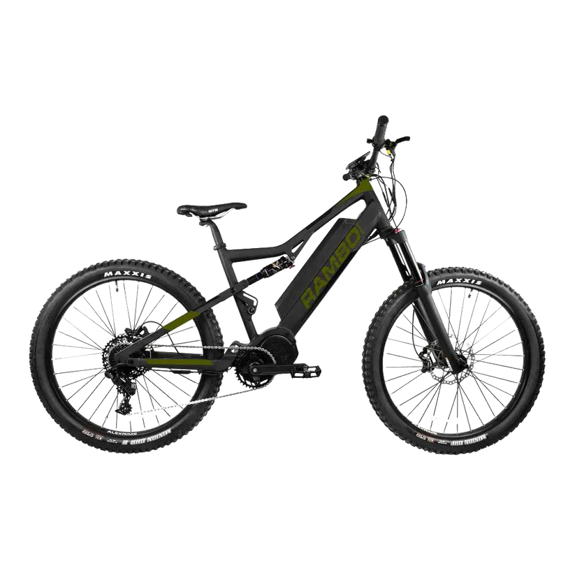 The Rambo Rampage 1000W Xtreme Performance Full Suspension fat tire electric bike caters to the Extreme Rider's demand for the best. Whether you're big game hunting in steep grades, tackling rough terrain on trails, or cruising along the beach, the Rampage XPFS is designed to excel. It features high-end suspension, a powerful 1000W extreme performance motor, and top-of-the-line bike components to ensure optimal performance in extreme off-road conditions. With no expenses spared, this bike is built to handle the most challenging adventures.