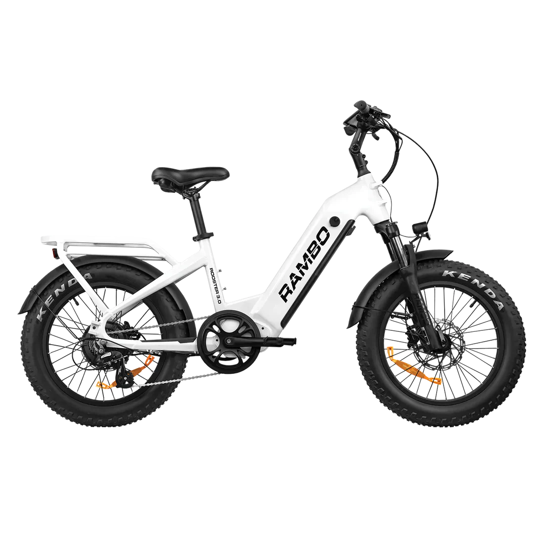 The Rooster 3.0 continues to impress with its sleek and ergonomic step-thru frame matched with the 750W Whisper Quiet Hub Motor. If you’re looking for an easy-to-ride bike with a frame size that is manageable for all sizes, The Rooster 3.0 is a great option. It comes fully equipped with everything you need to hit the road right out of the box. Unlike other bikes using hub motors, we spend countless hours designing the controller to outperform the others by leaps and bounds. This bike is built to perform like a RAMBO. You’ll be able to travel with ease with our integrated rear rack, headlight, taillight, and fenders. NEW for 2024, you will find the custom-designed rear rack comes standard to accompany many quick-lock accessories no matter what your mission is. Latch and go!