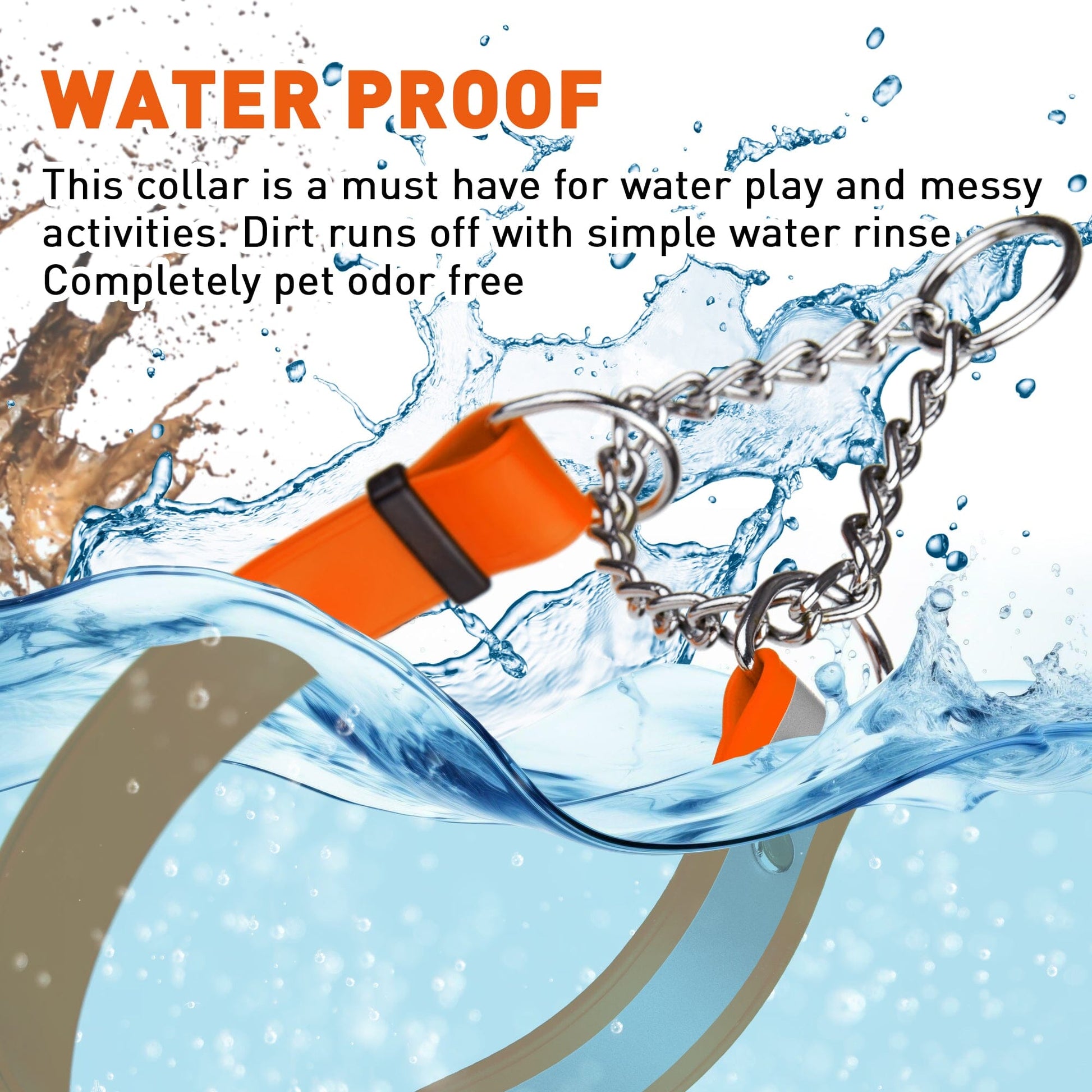 BUILT TO LAST: Our BioThane waterproof collar is designed with a durable polyester webbing covered in a strong waterproof coating that makes the collar extremely durable and resistant. The collar is also hard to deform and features a non-absorbent, odor-resistant surface for easy cleaning.