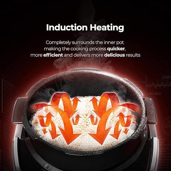 - INDUCTION HEATING: Compared to traditional bottom-plate heating, induction technology completely surrounds the inner pot making the cooking process quicker, more efficient and delivers more delicious results
