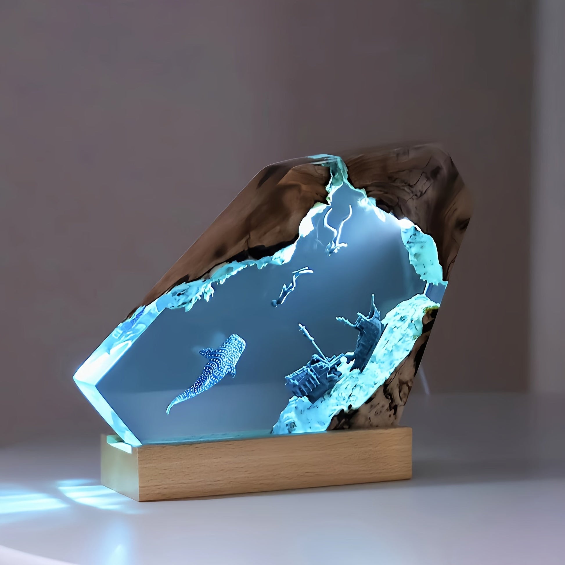 Handcrafted Resin Ocean Whale Design: Each night light is meticulously handcrafted with resin to create a unique ocean scene featuring a whale, offering an artistic and decorative aesthetic.