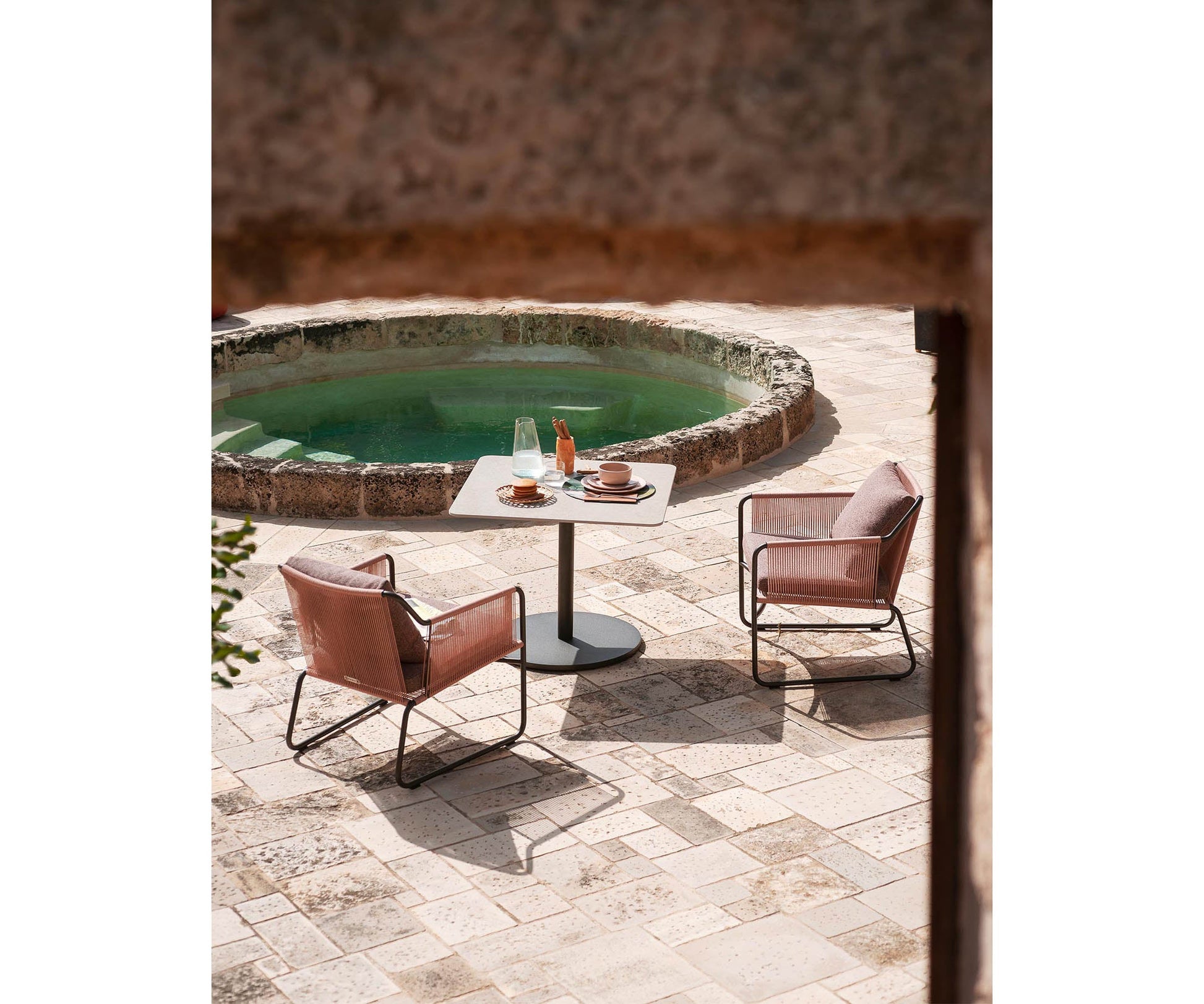 The Button Square Dining Table from Roda is a stylish and functional addition to any outdoor setting. Part of the versatile Button collection, this table features a sleek, square top and is available in various sizes to suit different spaces, from small urban balconies to large restaurant terraces by the sea. Crafted entirely from durable aluminium, the Button dining table combines lightness, resistance, and easy handling, making it perfect for both residential and commercial use. The table’s top is available in a variety of materials, including aluminium, gres, and teak (in natural or white painted WR finishes), offering flexibility in style and durability. Whether used for casual dining or more refined outdoor spaces, the Button Square Dining Table brings simple elegance and functionality to any environment.
