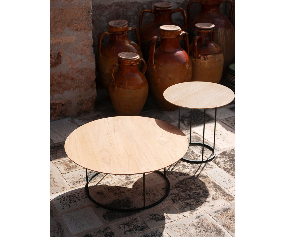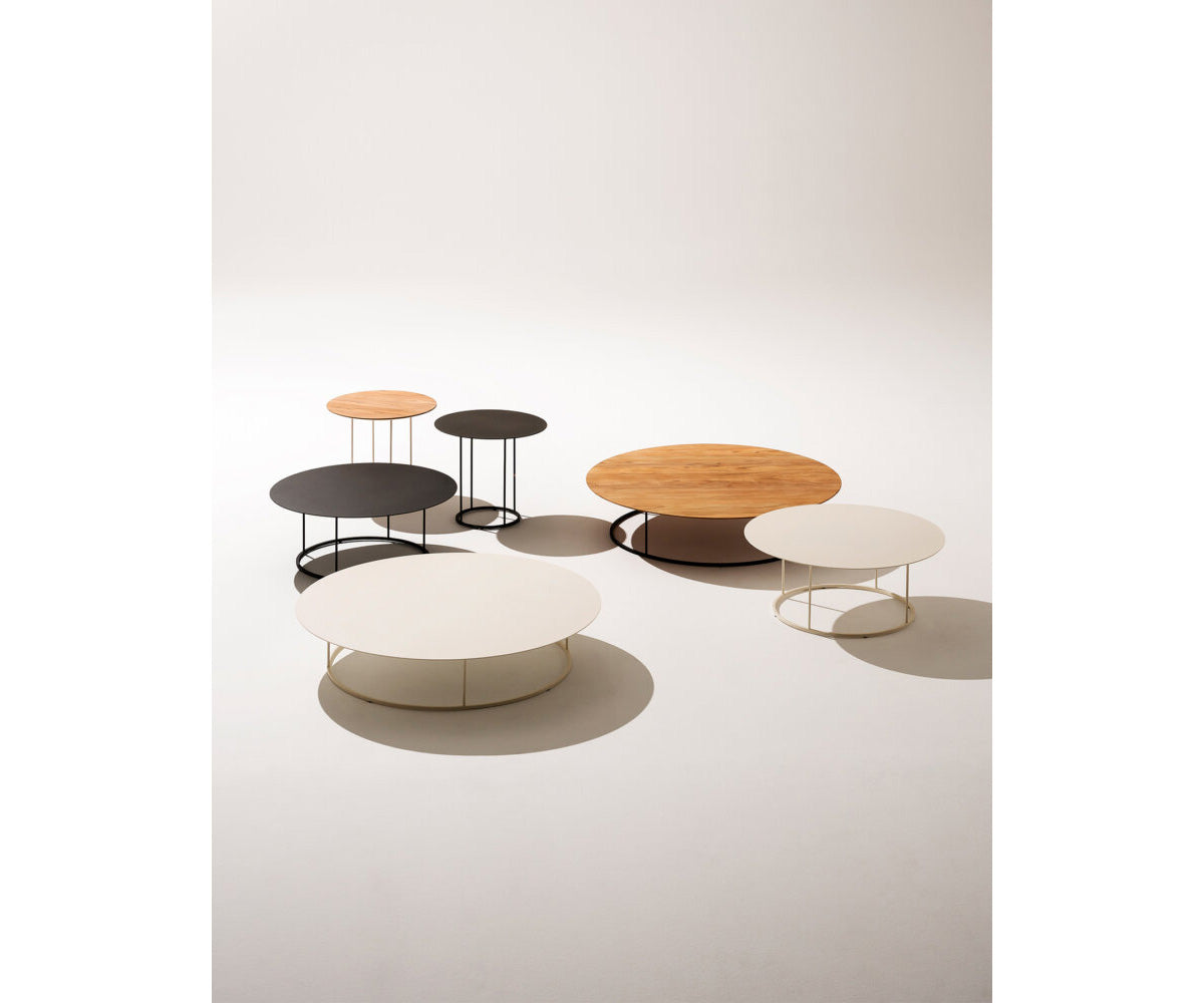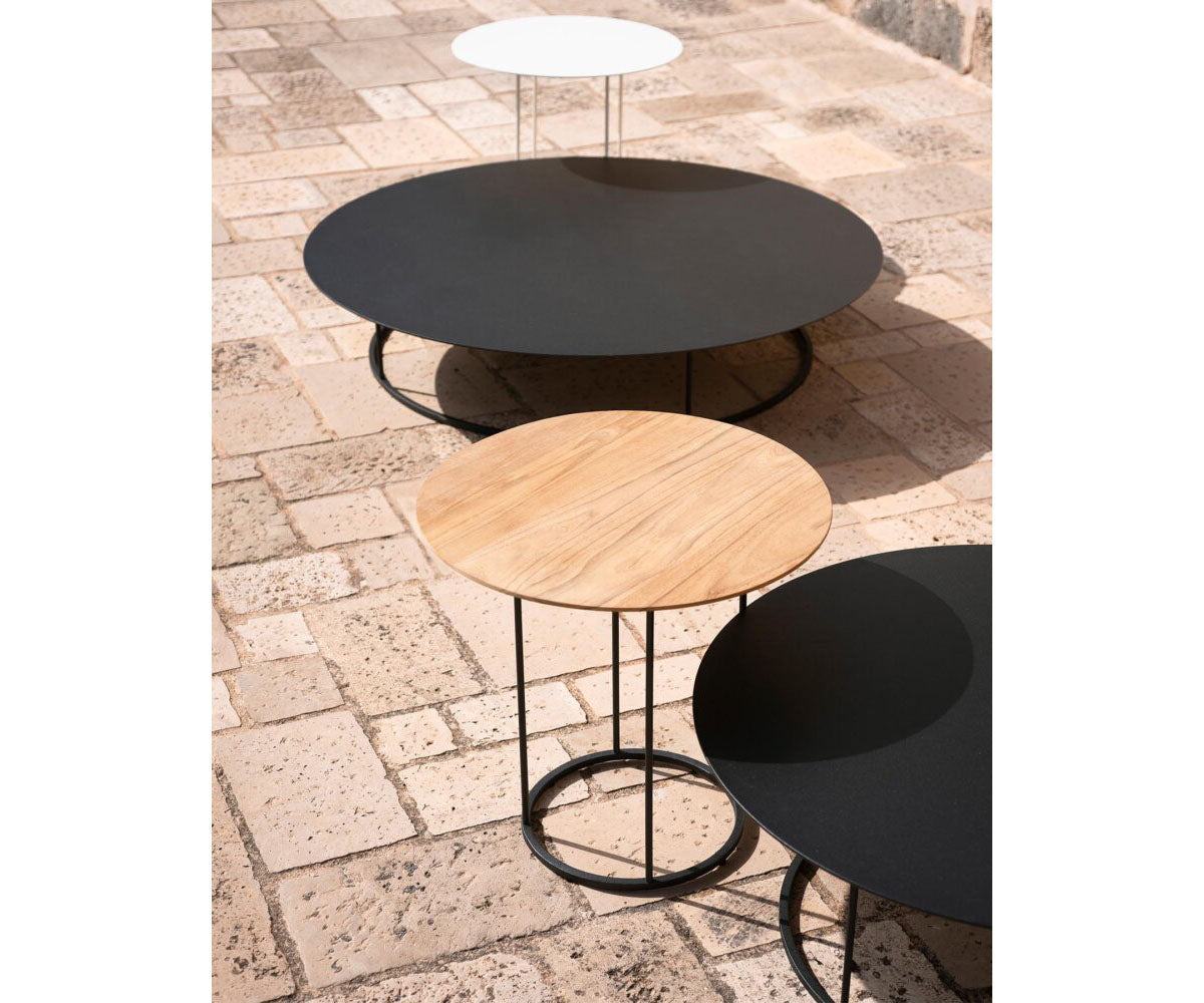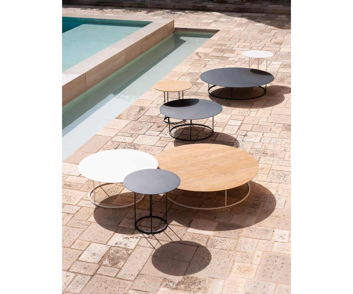 The Zefiro 003 Coffee Table is part of an elegant and versatile collection of low tables designed for outdoor use. Featuring a round top that rests delicately on a sleek, slender frame, the Zefiro 003 combines lightness with strength. This adaptable table is perfect for various settings, from casual outdoor lounges to sophisticated alfresco dining spaces. The structure is made of durable stainless steel, while the top is available in two stylish finishes: aluminium (in two color options) or natural teak wood, offering flexibility to suit different design preferences. With its modern aesthetic and practical functionality, the Zefiro 003 Coffee Table is an ideal addition to both residential and commercial outdoor spaces.
