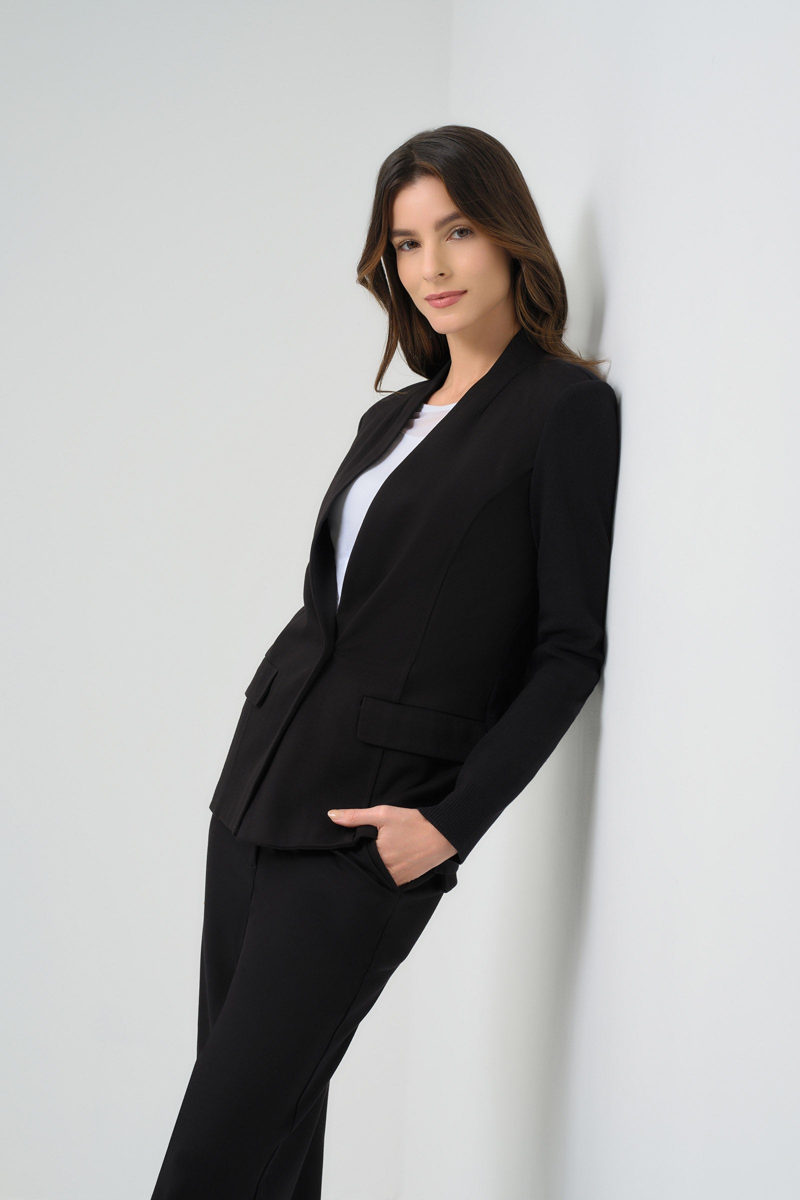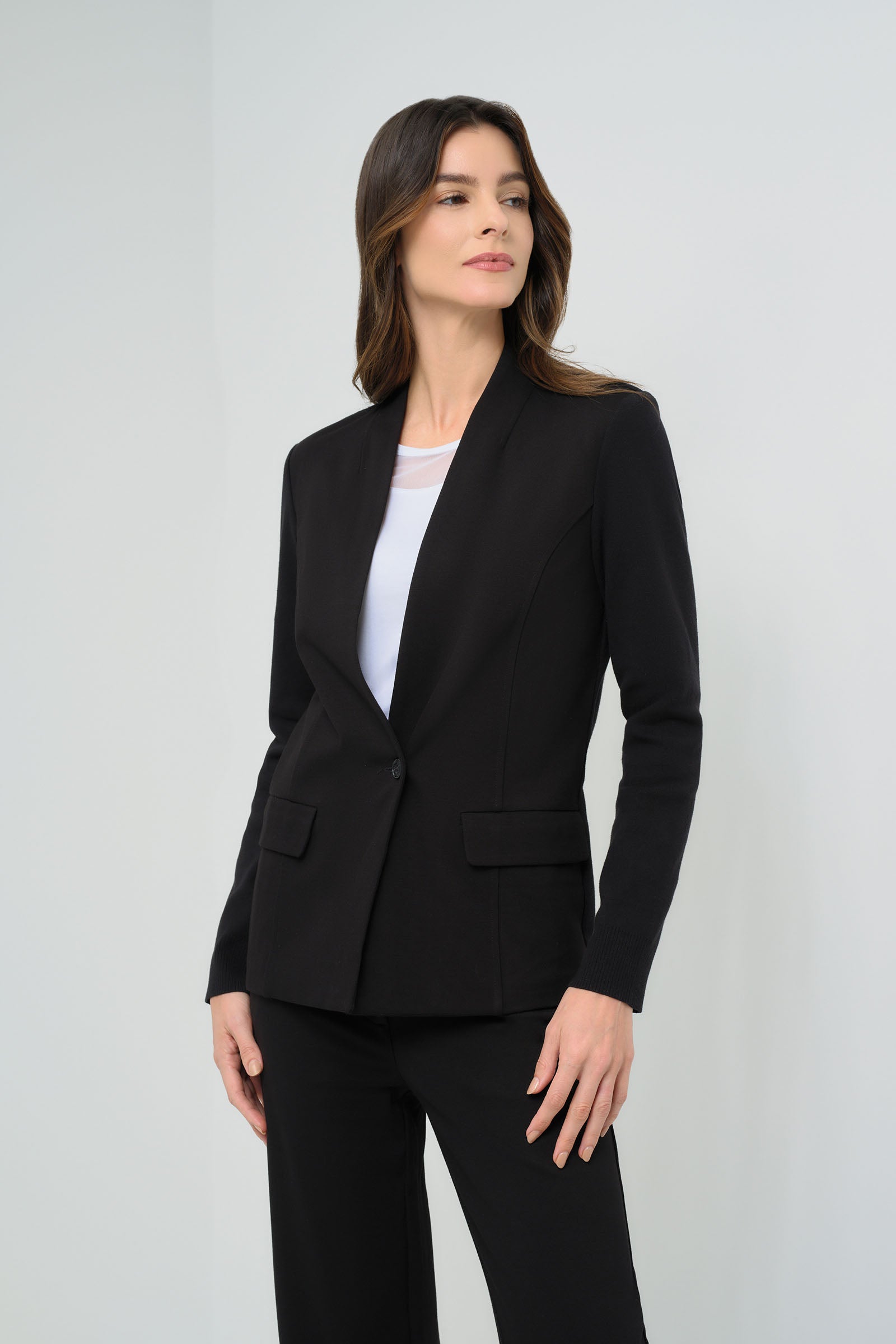 Indulge in luxury with the Rosalinda Performance Knit Sleeve Blazer. This sweater blazer seamlessly blends elegance and comfort, effortlessly elevating any look with its polished performance knit design. Crafted from high-quality stretch knit fabric, the Rosalinda blazer exudes sophistication, making it a timeless addition to your wardrobe. This knit sleeve blazer is a must-have piece for anyone looking to feel like a true fashion icon.