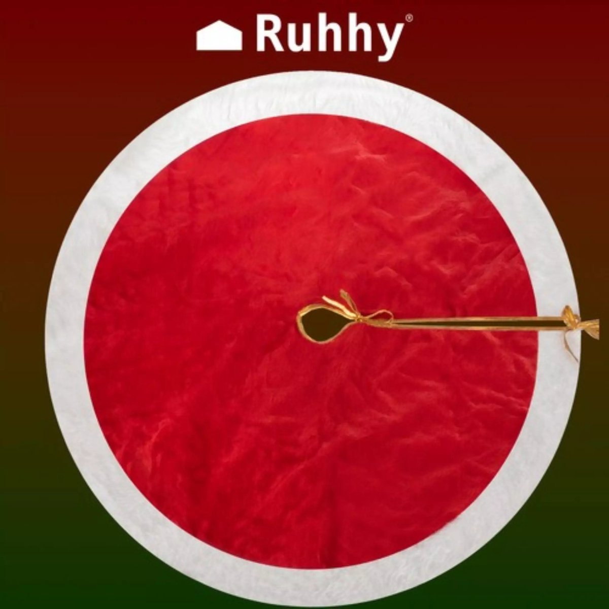 Ruhhy Kerstboommat 90cm met Gouden Binding - Elegante Rode en Witte Decoratie