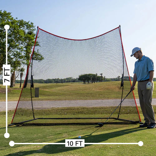 LARGE 🎯 area to collect even an errant shot at 10ft W x 7ft H x 3ft D. Safely swing inside or outside.