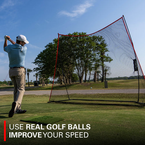 LARGE 🎯 area to collect even an errant shot at 10ft W x 7ft H x 3ft D. Safely swing inside or outside.