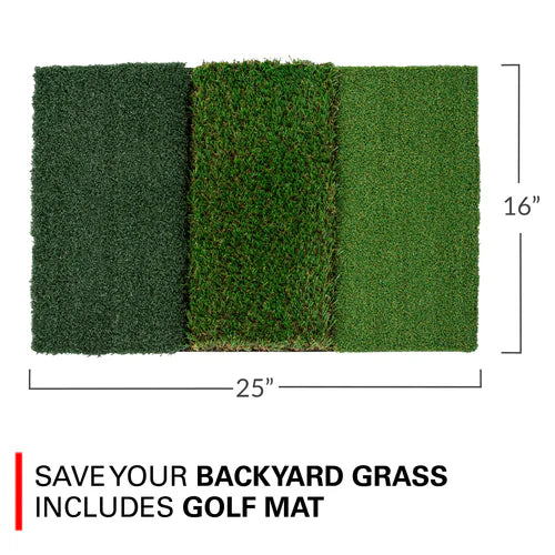 The most complete, quick, and durable golf practice package system on the market. Knotless netting efficiently disperses the power from your shot while allowing the ball to roll back smoothly to your feet. The RukkNet is the fastest and easiest net to set up and take down. It pops up instantly out of the bag and folds down using clear instructions printed directly on the net, featuring our proprietary Easy Fold system. Standing 7' tall and 10' wide, the net is lightweight, durable, and versatile, making it perfect for refining your swing before your next round. Skip the driving range; bring the range to you! The ball returns after every shot, eliminating the need to bend down or carry a bucket of practice balls. All Rukket Golf Nets are double-stitched and constructed from the heaviest materials available. The thick canvas carrying case features double zippers for longevity, and it can hold the tri-fold hitting mat, golf balls, chipping attachment, and a golf club, complete with a thick, comfortable shoulder strap. Weighing only 16 lbs, it folds flat into a 32-inch circle, easily fitting in the trunk of your car.