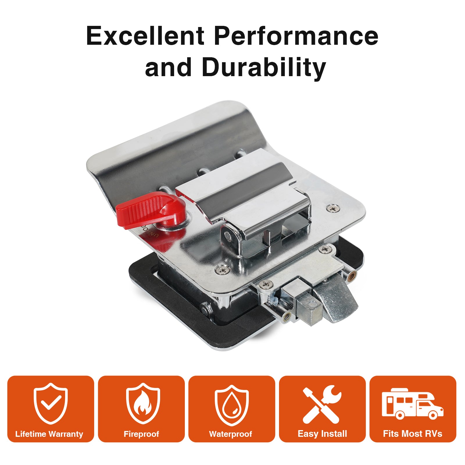 - Durable Zinc Alloy Material: KingRVer RV door locks are made of 100% zinc alloy, which effectively enhances the lifecycle of the rv door latch.The waterproof design allows our RV door locks to handle harsh outdoor environments. The all-metal surface and gasket seal make it resistant to rust and dust.
