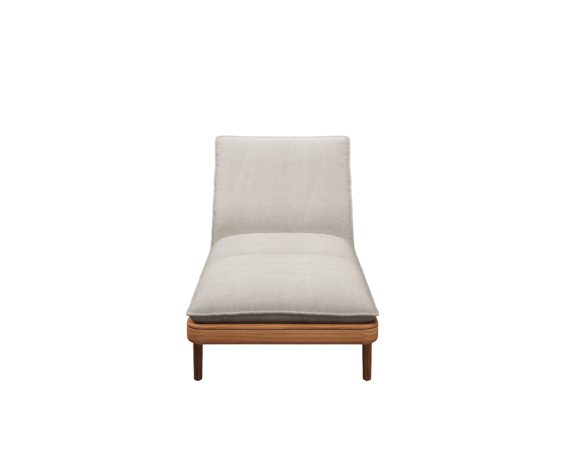 Notes: Natural finish teak frame. Gas strut reclining mechanism. Cushion required.