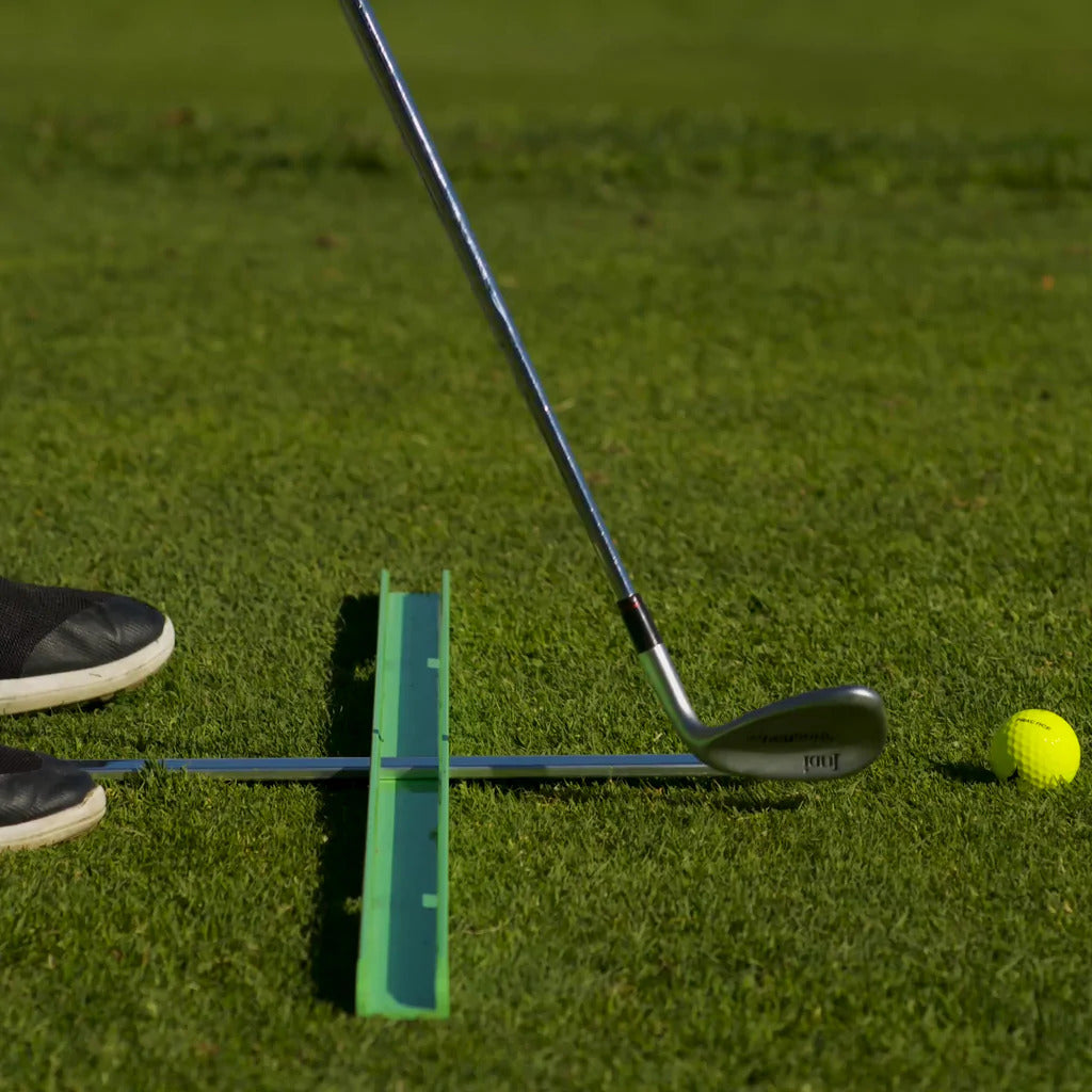 The primary function of the Scratch Stick is to align full-swing shots in the practice area or on the course. It does this by providing two alignment sticks that can be placed on the ground in front of you. The sticks help you visualize your target line and ensure that you are properly aligned.