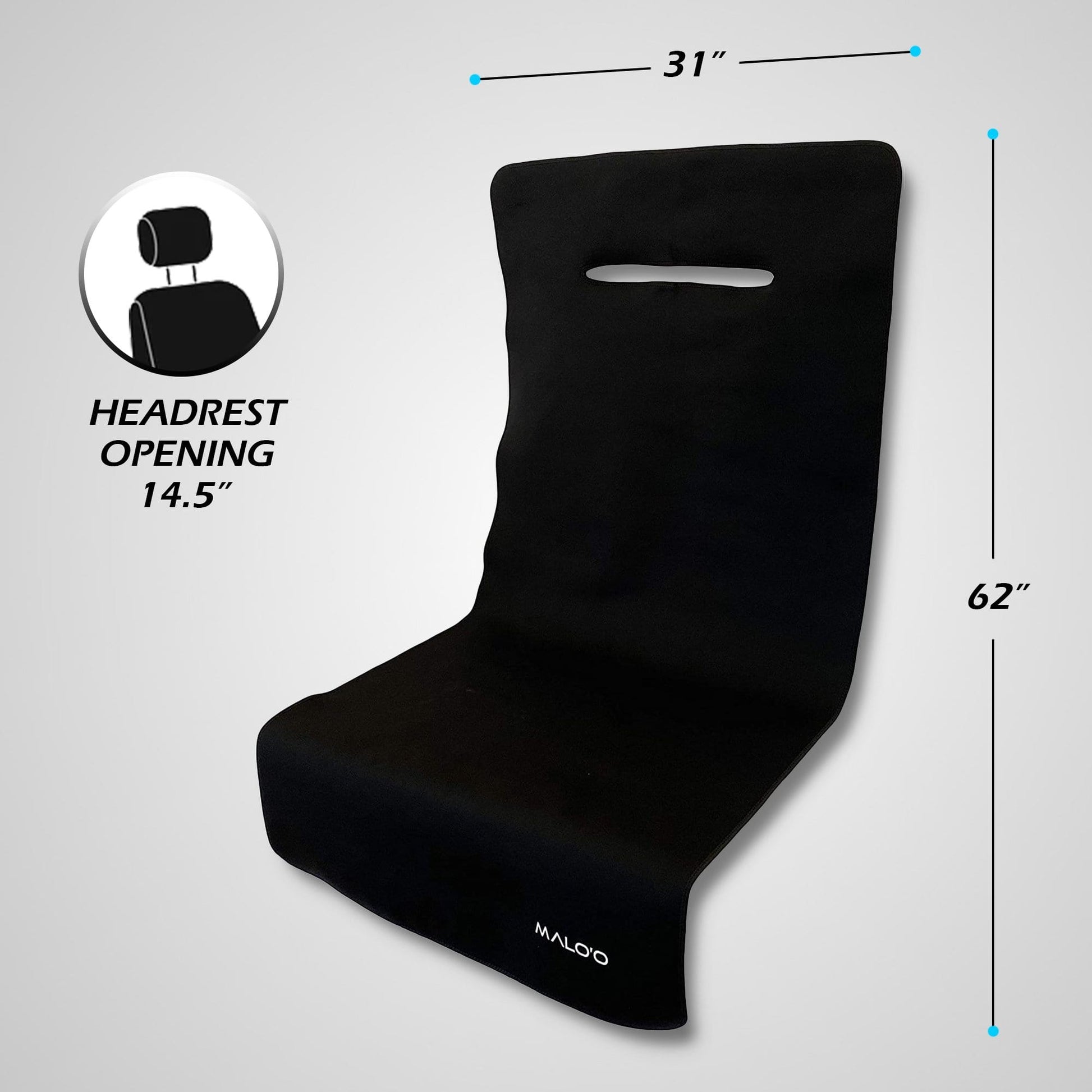 The Malo’o SeatGuard™ Waterproof Waxproof Car Seat Cover is the largest single-seat cover available on the market and can fit all types of vehicles, including large RV captain chairs, van, and truck seats. To use, simply slide the cover over the headrest and tuck in the edges for a perfect cover. Your seats will be protected from the sun, mud, dirt, and water.