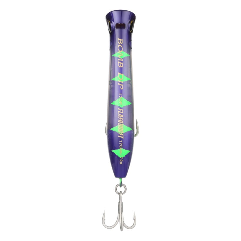 Built to sustain the explosive strikes of offshore and nearshore game fish, the Shimano Bomb Dip 170F FLASH BOOST is a dynamic and easy-to-use topwater lure featuring Shimano’s BOOST CONCEPT lure technologies for heightened performance when chasing tuna or other aggressive pelagics. The unique cupped-face design of the Bomb Dip 170F FB combines with Shimano’s patented Bubble Chamber technology to create a loud and visual splash that creates a bubble trail that allows predators to hone in on the lure, even in a chop.
