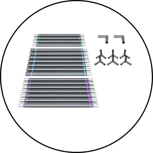 Frame Assembly is now simpler with our color-coded push pin poles and connectors. These innovative color-coded pipe kits streamline the process of setting up your enclosure, ensuring a smoother assembly experience than ever before.