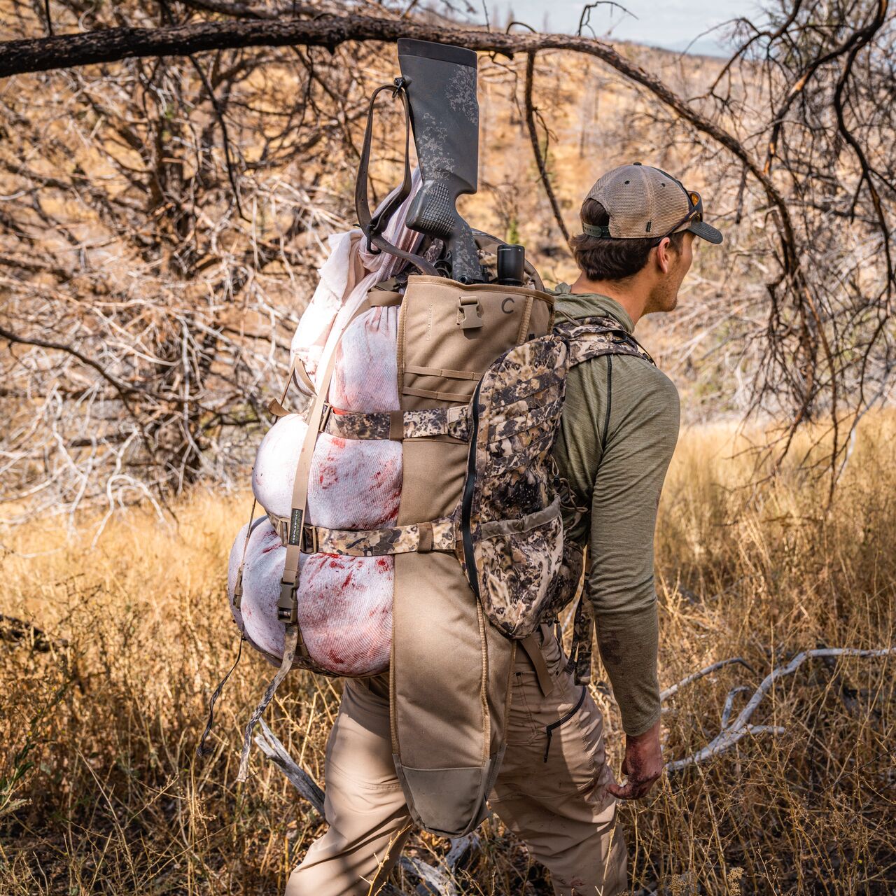 The Bolt Action Scabbard uses MOLLE webbing to attach to most Eberlestock packs. Most commonly, it is paired with the Mainframe as part of Eberlestock's EMOD system.