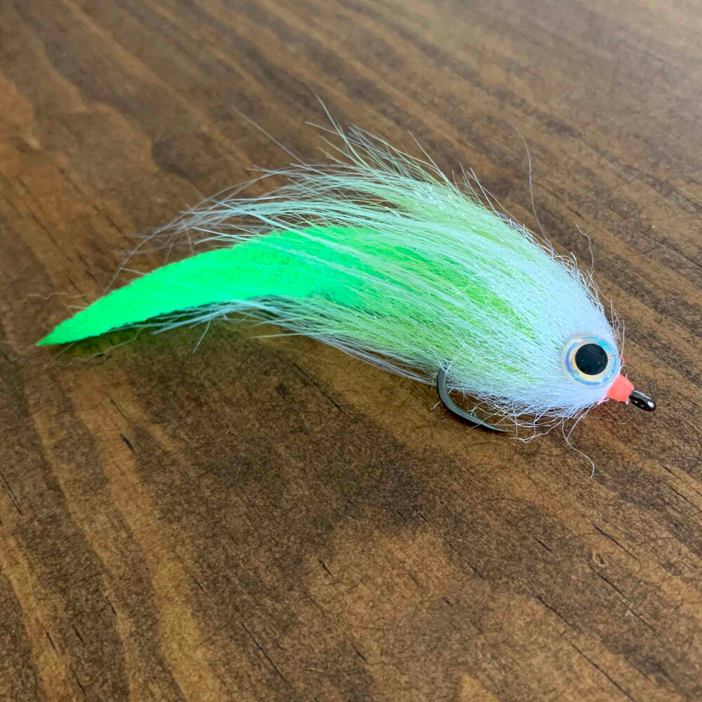 Made with Mangum's Dragon Tail that provides unbelievable action and movement in the water. We added a flashy collar and a large brushy head and the result is a fly that pushes lots of water and demands attention. This has quickly become our most popular nearshore/offshore pattern, and it is the perfect fly to throw at any Bull Red, Tarpon, Cobia, or Jack Crevalle.