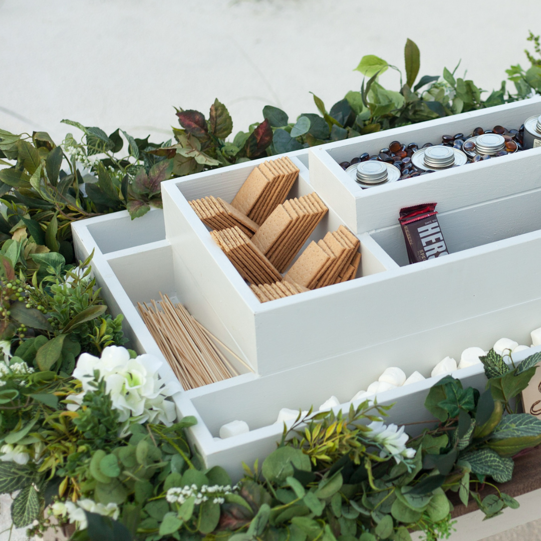 Elevate your beach bonfire or dessert table game with our S'mores Bar service. Enjoy jumbo marshmallows, 2 types of melting chocolates, crackers, and roasting sticks. Perfect for cool night gatherings!
