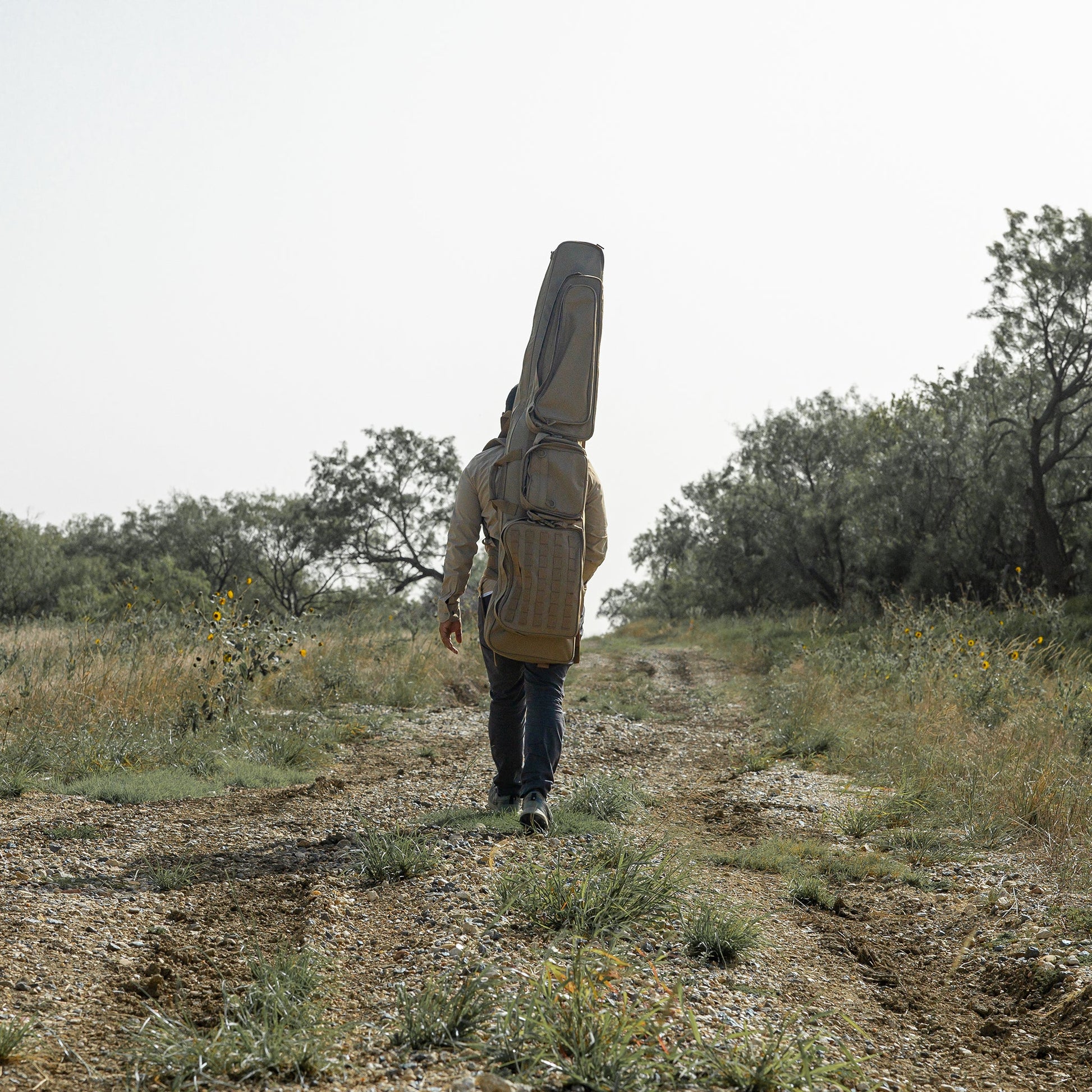 The 57” version of our popular Sniper Sled Drag Bag features a triple-fold, tapered rifle bag design that folds flat into a shooting mat. The third leaf serves as an internal divider panel, making the E57B Sniper Sled Drag Bag™ an excellent two-rifle case. There is also a removable harness system that can be used with the rifle bag barrel up or barrel down. The included exterior pouches are sized for shooting accessories and can be removed.