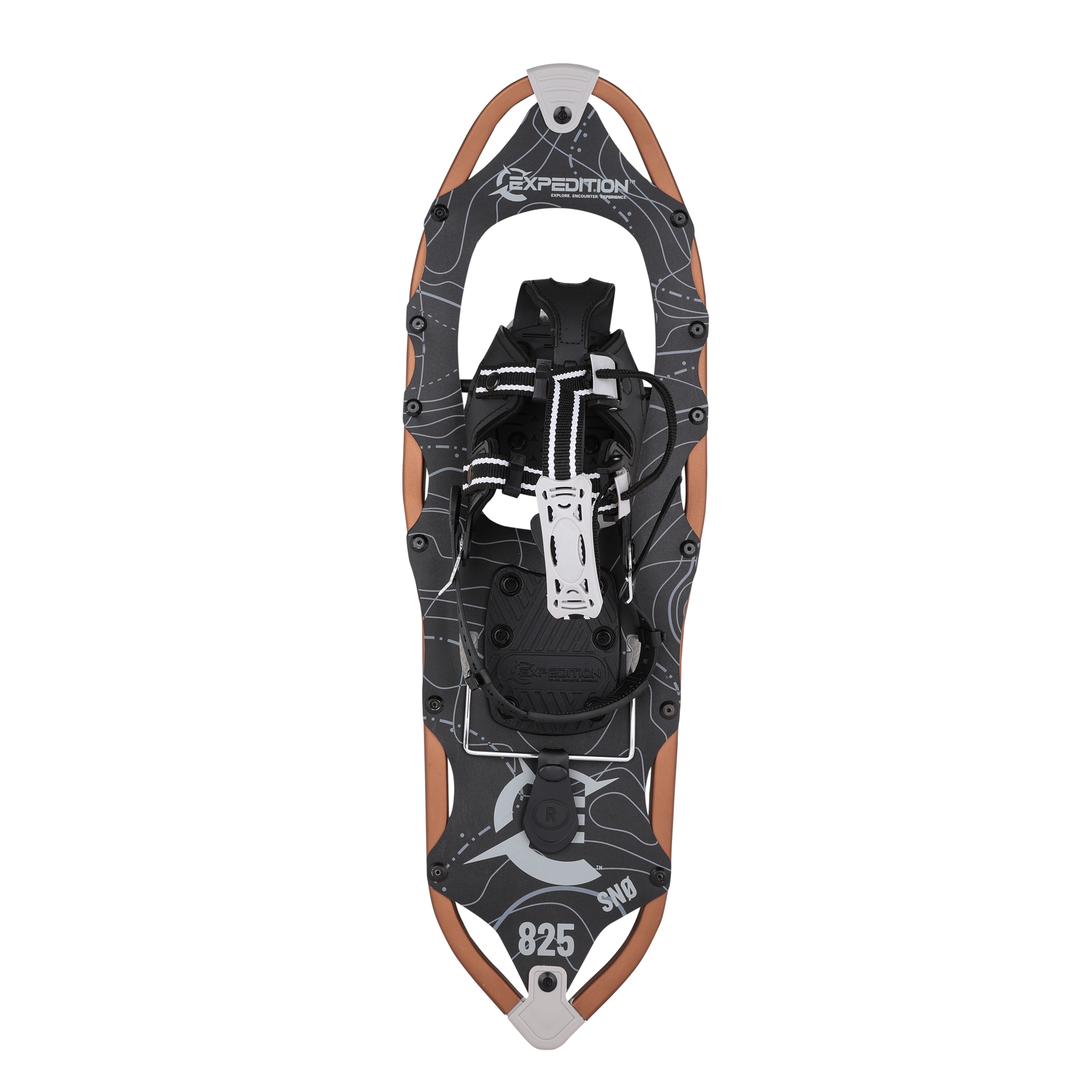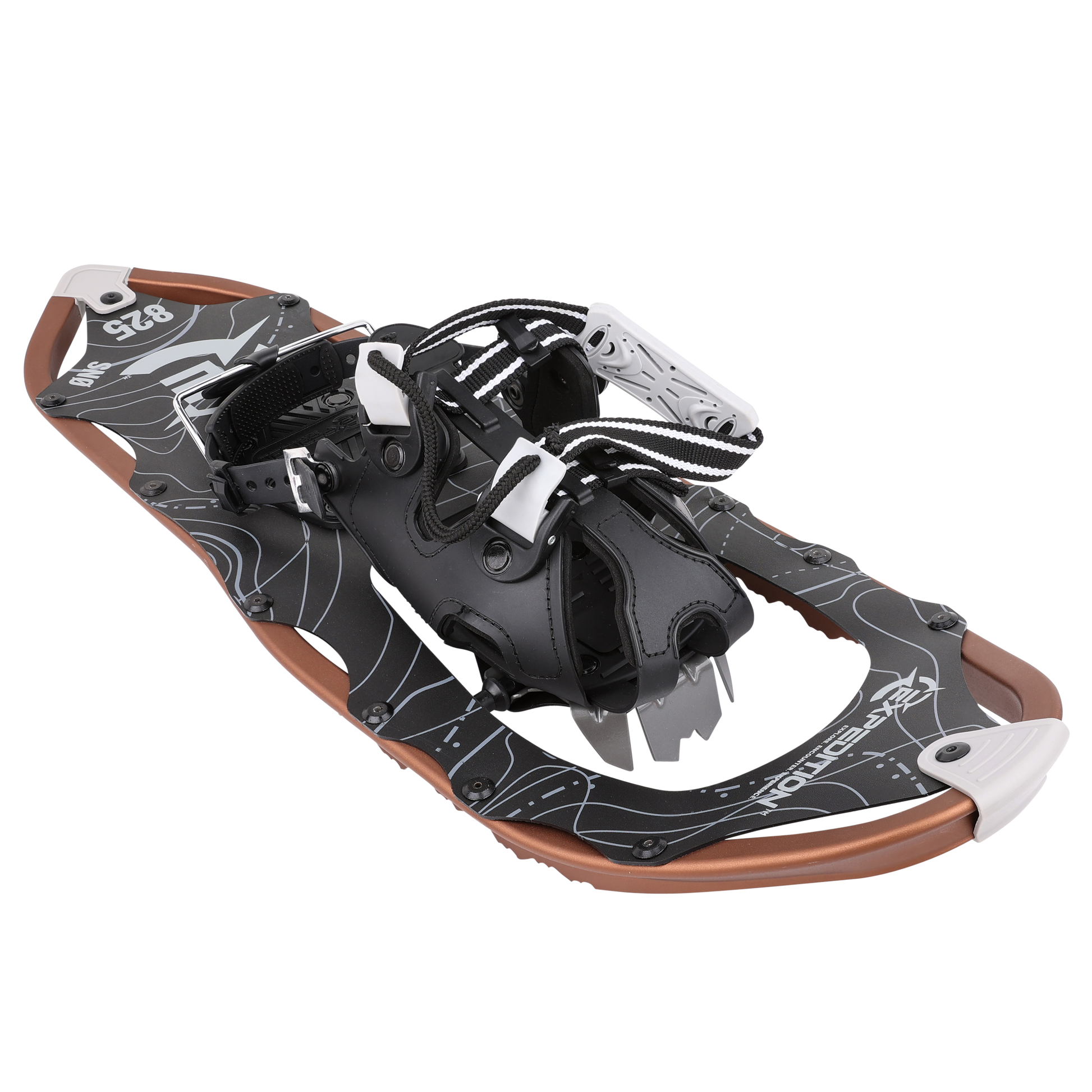 Explore snow-filled trails and valleys with ease and comfort with the Expedition Sno Series Snowshoes. Each snowshoe is built with an aluminum sawtooth frame that is topped with an anodic coating to protect the aluminum from abrasion, which ensures your snowshoes last year after year.