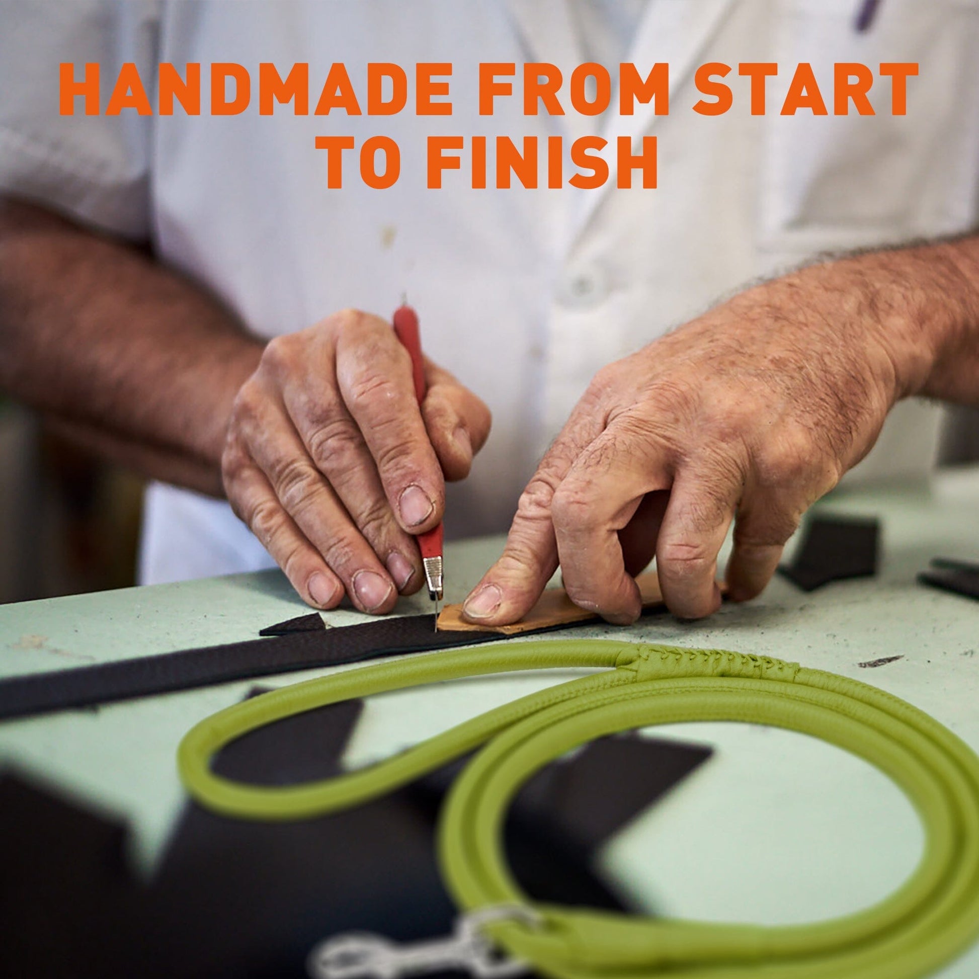 All leads are handmade and stitched with wax thread. Our European technology features nylon cord wrapped in leather, therefore they will not stretch or break. Leads are soft and padded for extra comfort, yet remain lightweight and flexible.