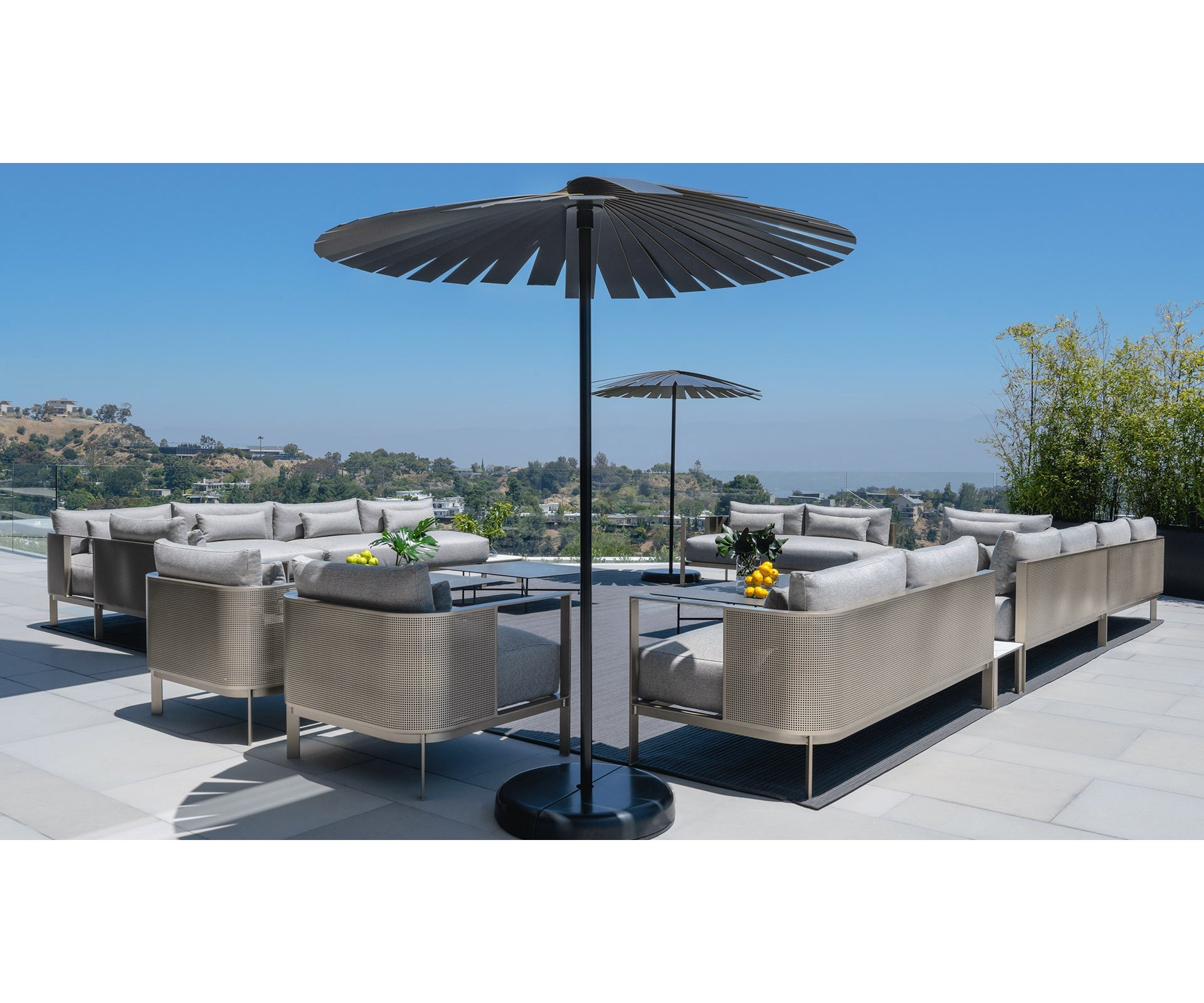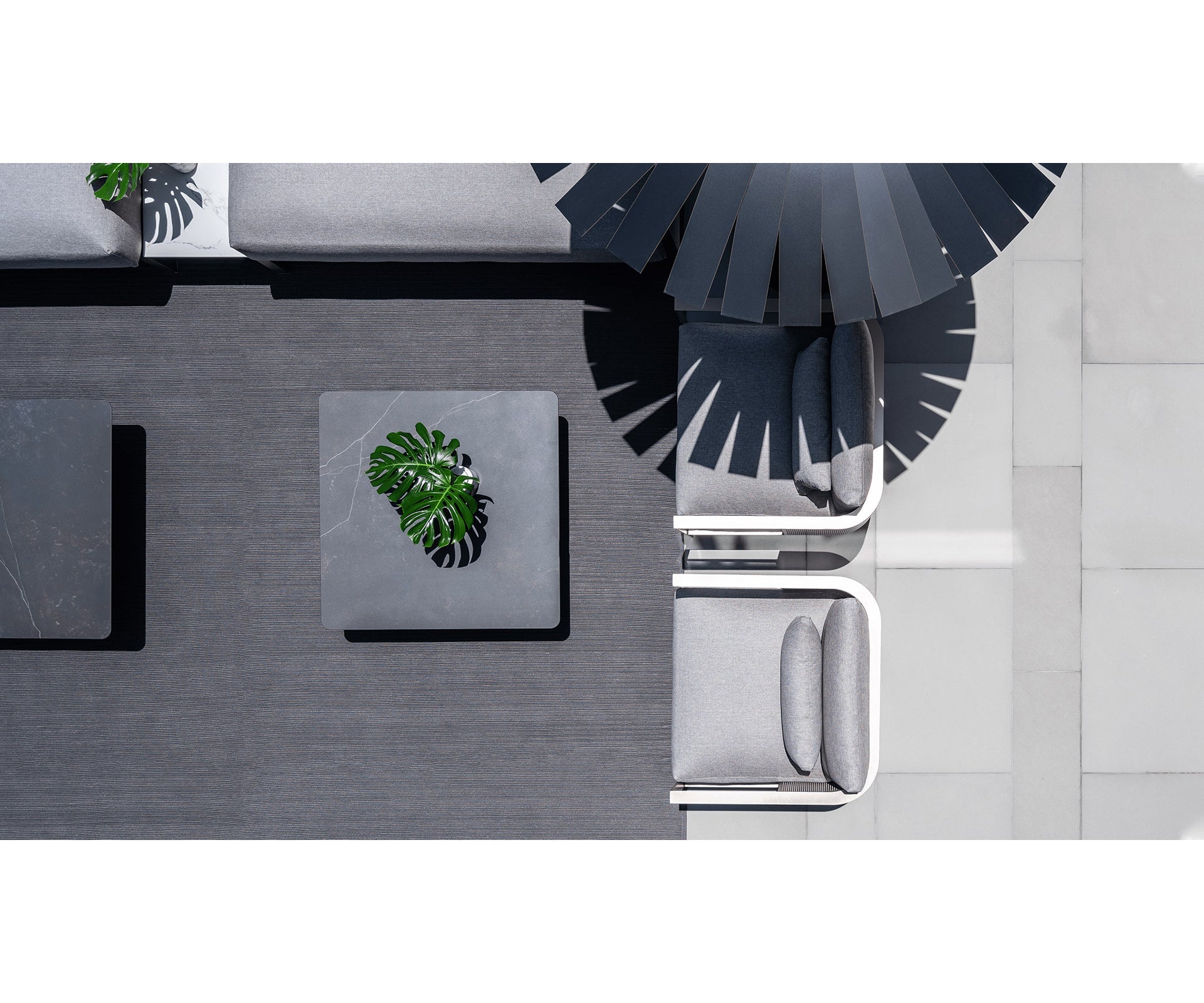 Choose your own colour palette. The welded, powder-coated aluminium structure of the SOLANAS lounge chair is available in a wide range of colours to suit your taste and needs. Combine it with the rest of the collection to configure your own outdoor space.
