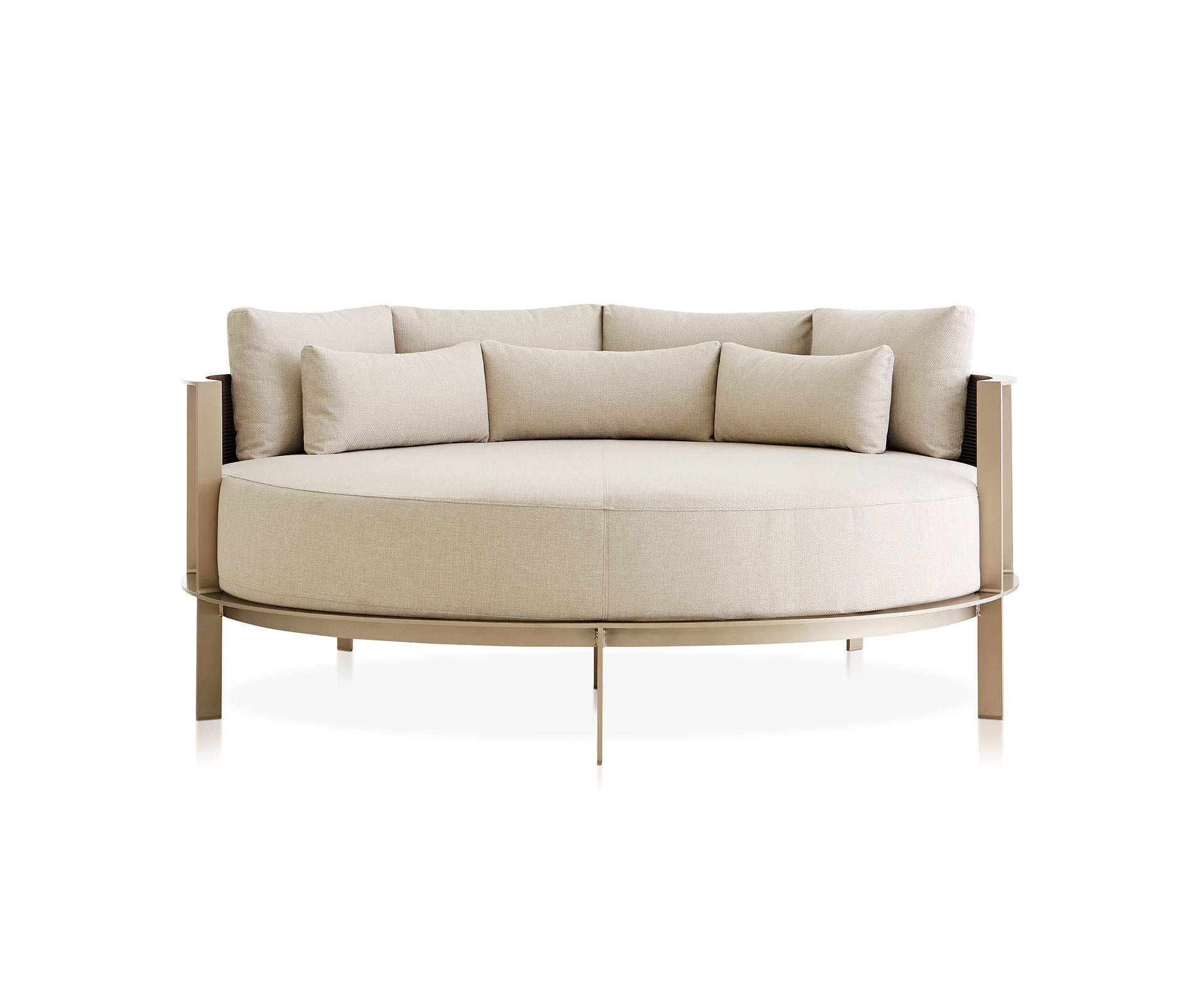 The SOLANAS round chill bed works by itself but also complements the collection. It is a designer chill bed manufactured through semi-industrial processes, in which labor is crucial. Its structure is made of aluminum profiles, GANDIABLASCO’s fetish material, and hand-welded micro-perforated sheet metal.