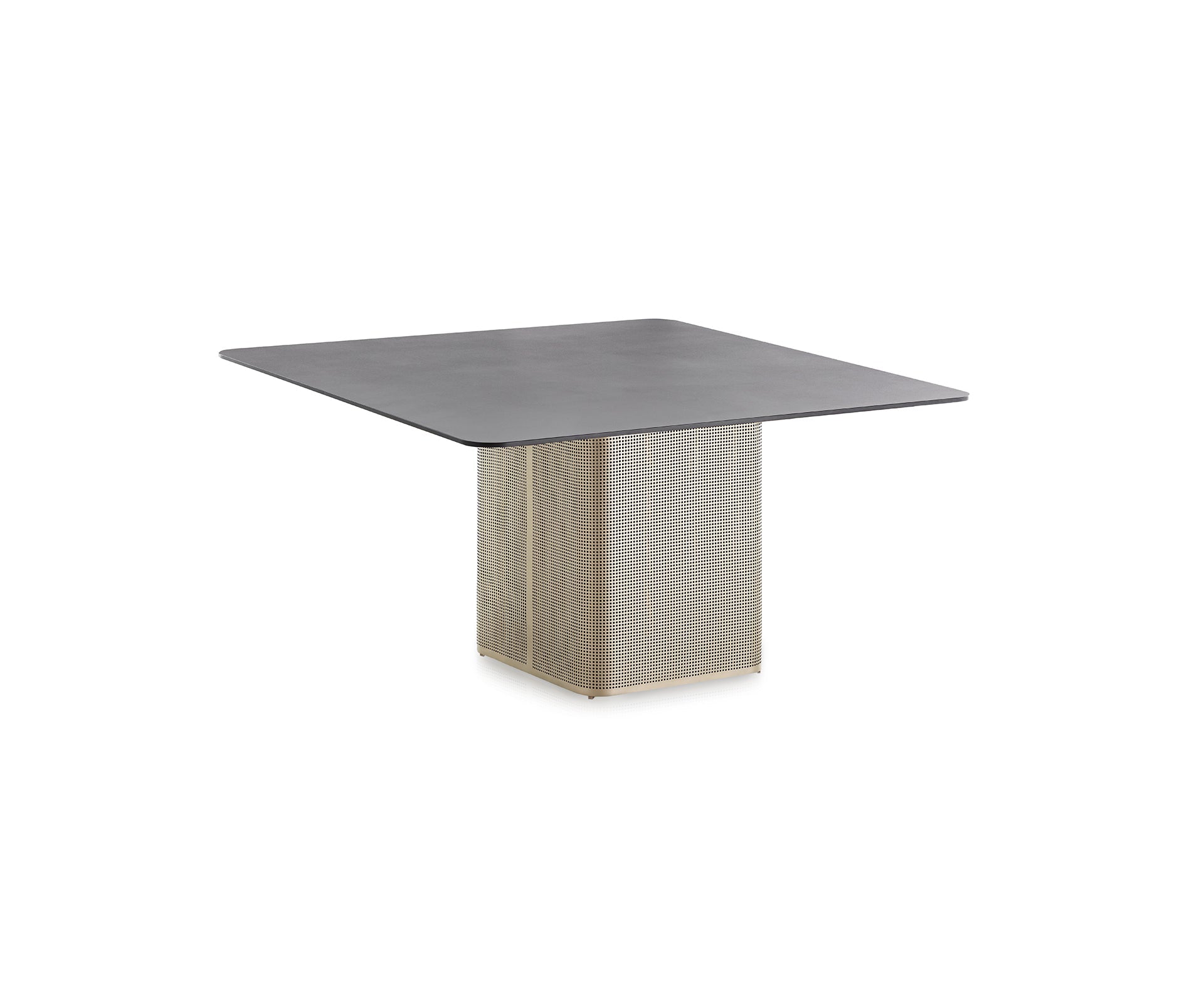 Daniel GermaniThe SOLANAS dining table is a structured designer table made with powder-coated aluminum profiles welded by hand through semi-industrial processes, which are later powder-coated in all the colours available in our catalog. The top of this table includes several options in different shades, made of a special outdoor porcelain material, Dekton® by Cosentino. Choose the one that best suits your tastes.