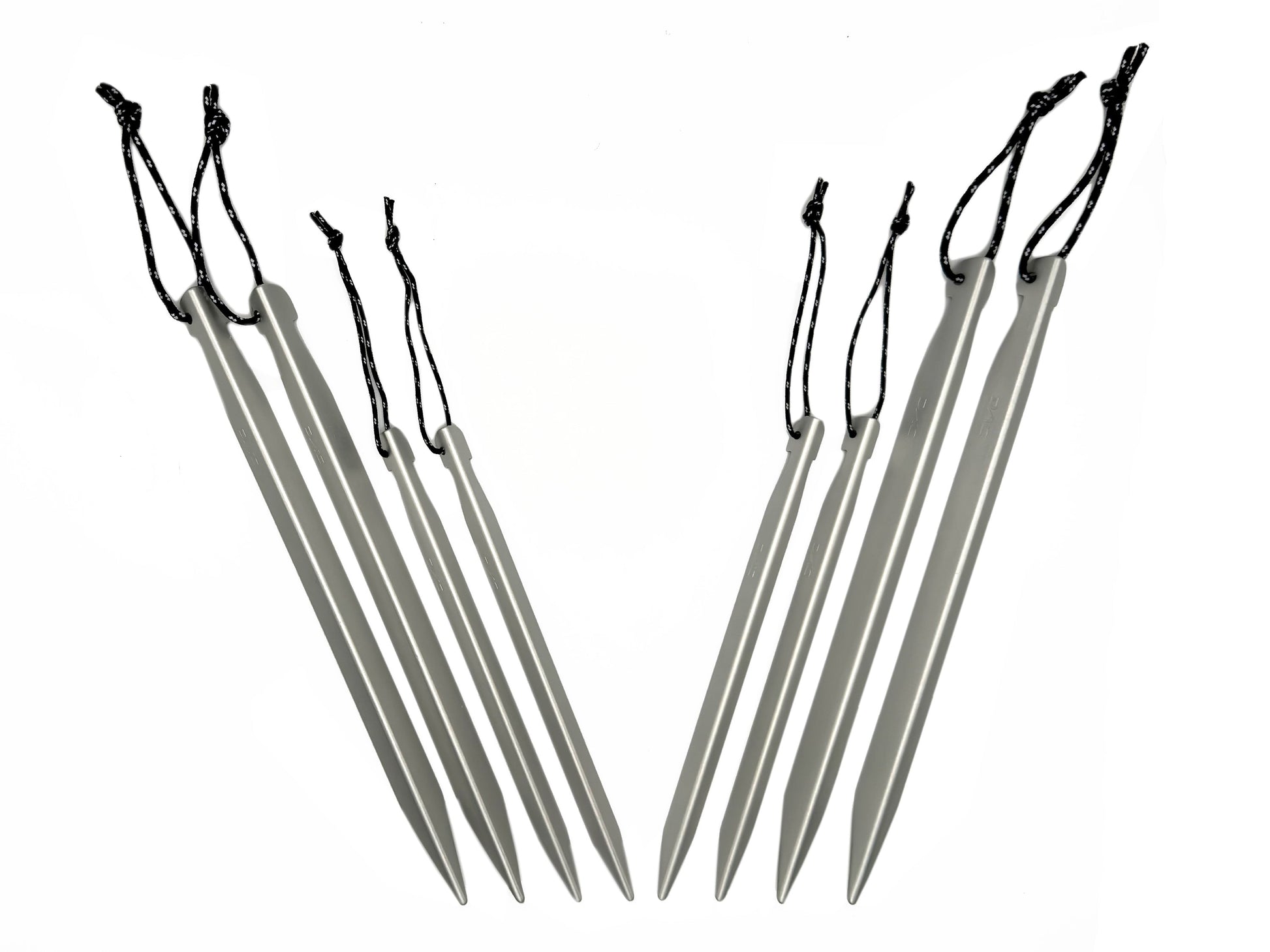 A tent fly includes the fly and stuff sack. Buy a tent fly and inner gets a complete tent aside from stakes. Stake packs include the stake sack and a total of 8 DAC stakes. The 8 DAC stakes are provided in two sizes (6" and 8") with 4 of each length. These stakes weigh 7g and 16g respectively.