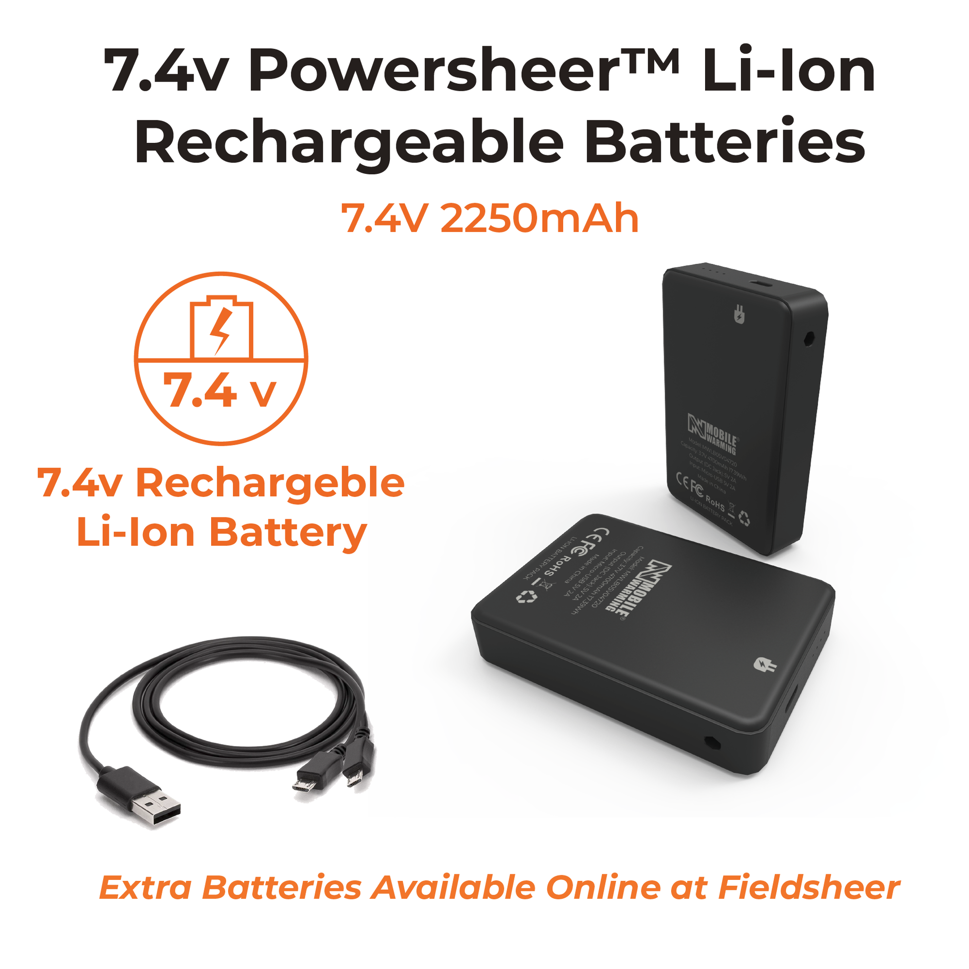 - Compact, comfortable 7.4 volt Rechargeable Lithium-Ion Battery