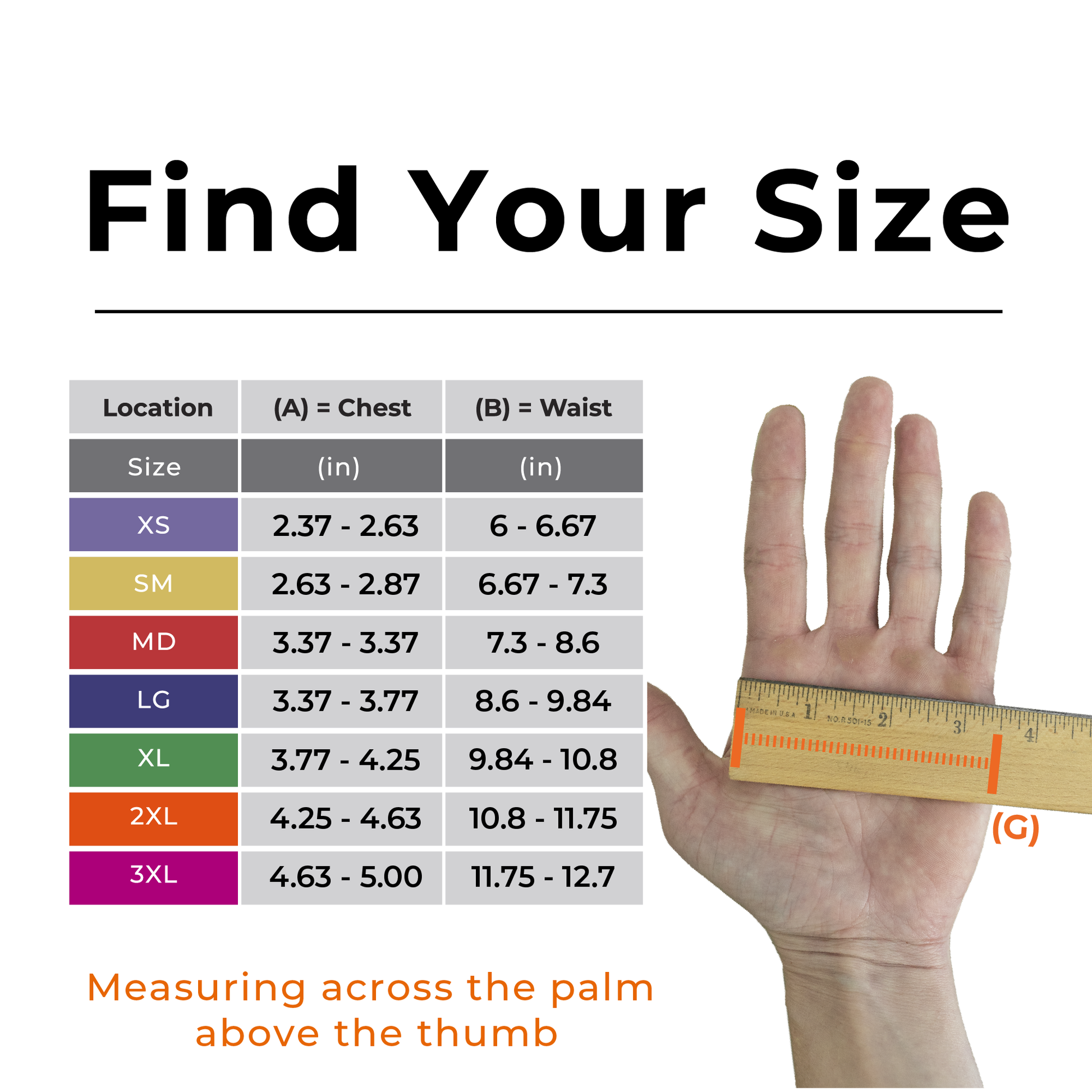 - Available XS, SM, MD, LG, XL, 2XL. Consult our Size Chart or refer to the back of your packaging for a physical hand chart.