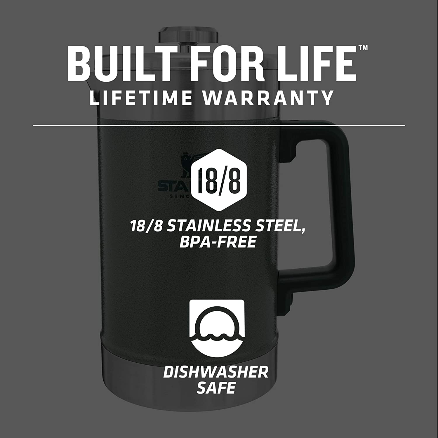 Great coffee is meant to be shared and this large capacity French press can brew enough for your whole crew. There’s a stainless steel mesh filter to keep grounds in place so you get a bold, full-flavored cup of coffee with minimal sediment, every time. Vacuum insulation also keeps everything piping hot until the moment you’re ready to pour. Built rugged for the outdoors, but so good you’ll probably use it at home daily.