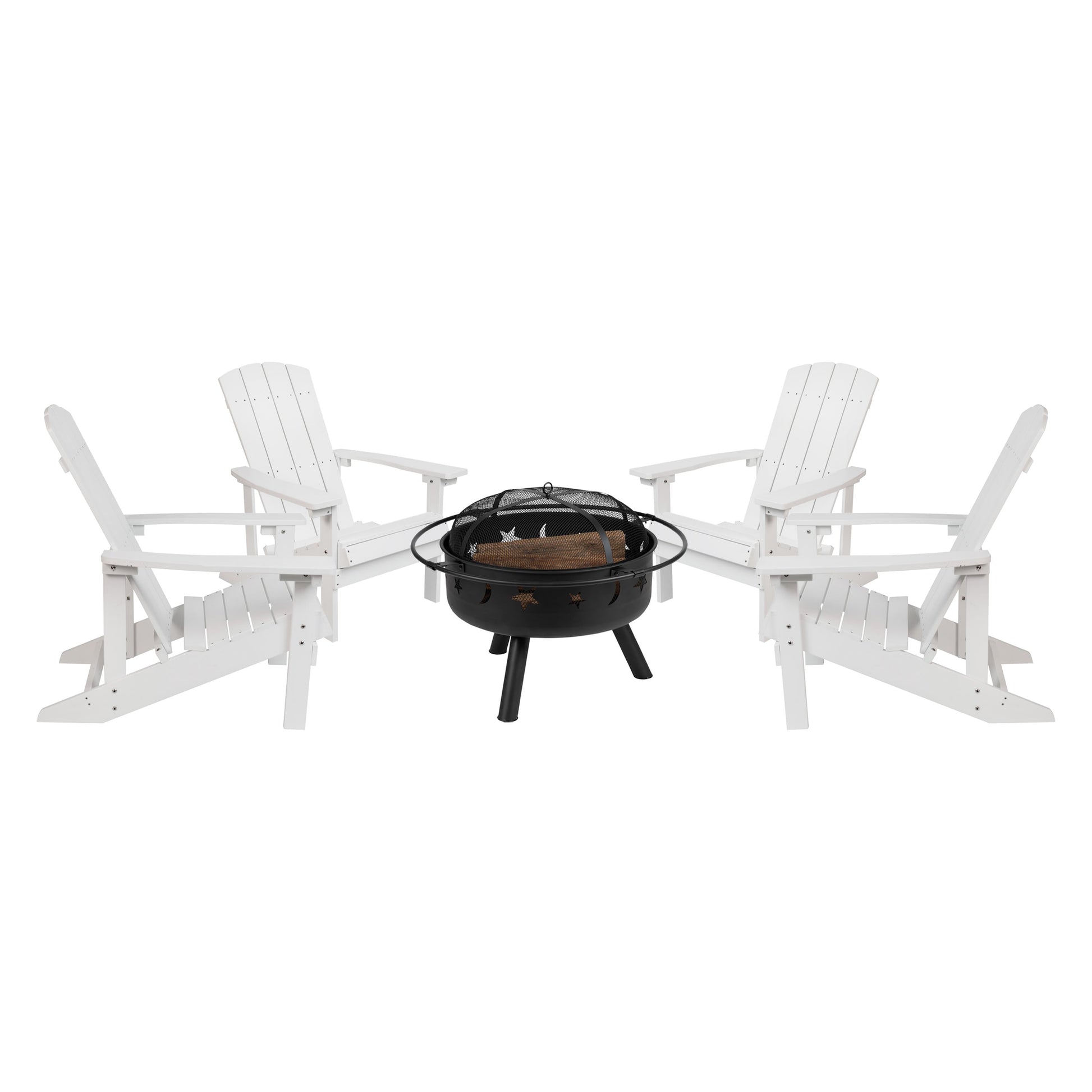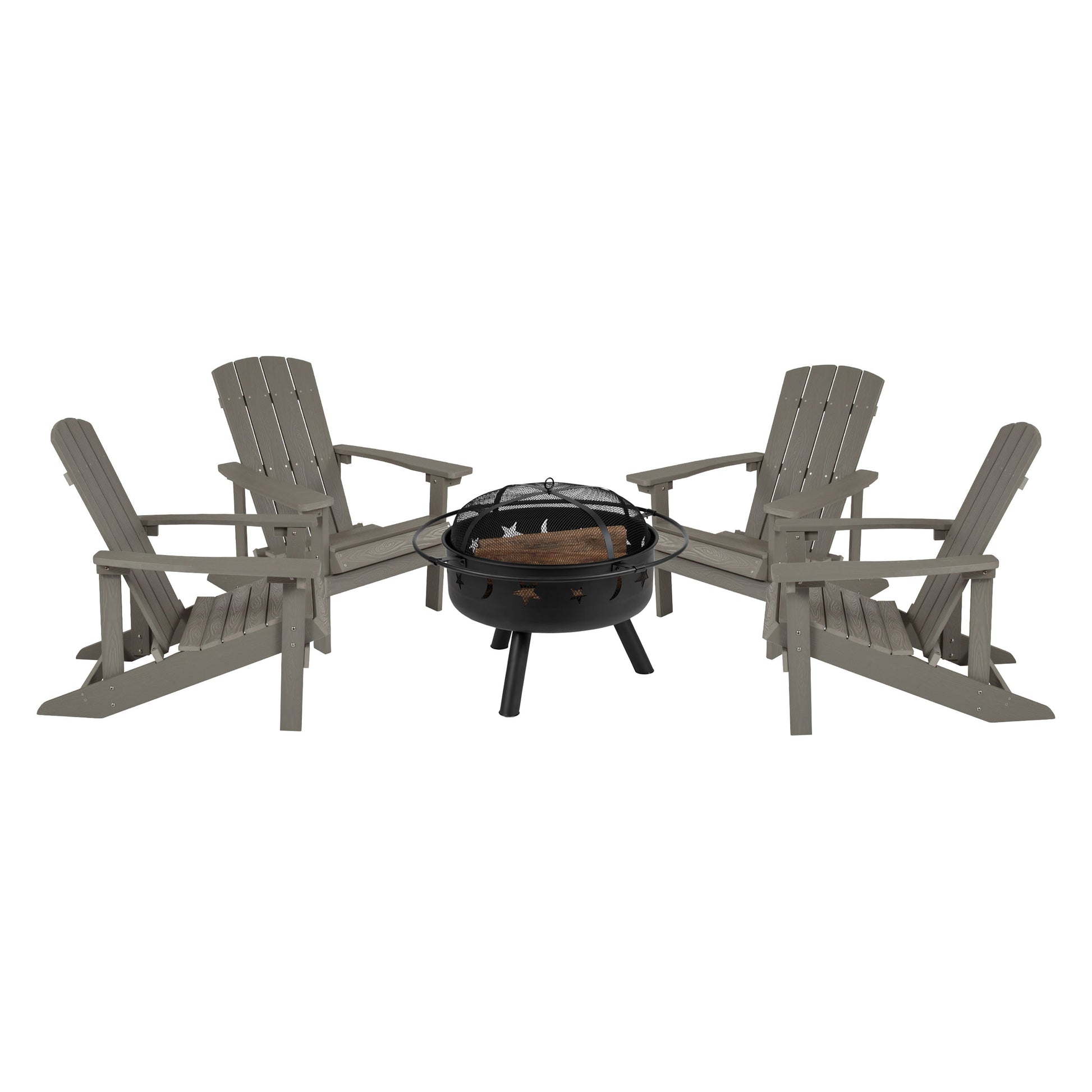 5 Piece Charlestown Poly Resin Wood Adirondack Chair Set with Fire Pit - Star and Moon Fire Pit with Mesh Cover