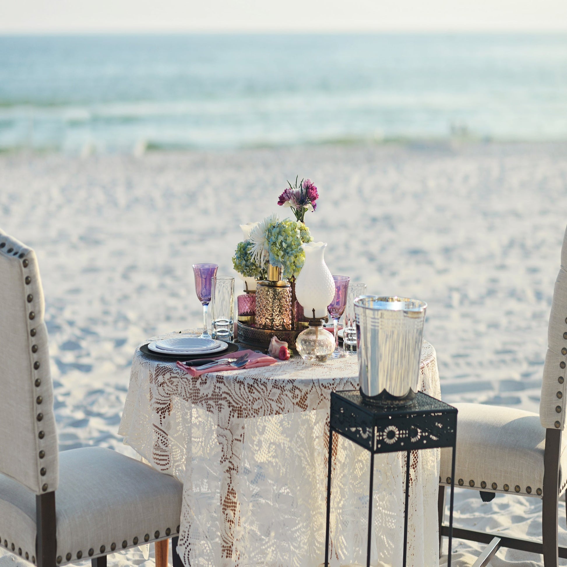 The perfect way to propose or just to show how much you care! This date night includes a private table for 2 on the beach for sunset. Enjoy a romantic table setting with fresh flowers and candlelight, music, and dinner from your favorite local restaurant served to you, as you watch the sun set over the Gulf of Mexico with the love of your life.