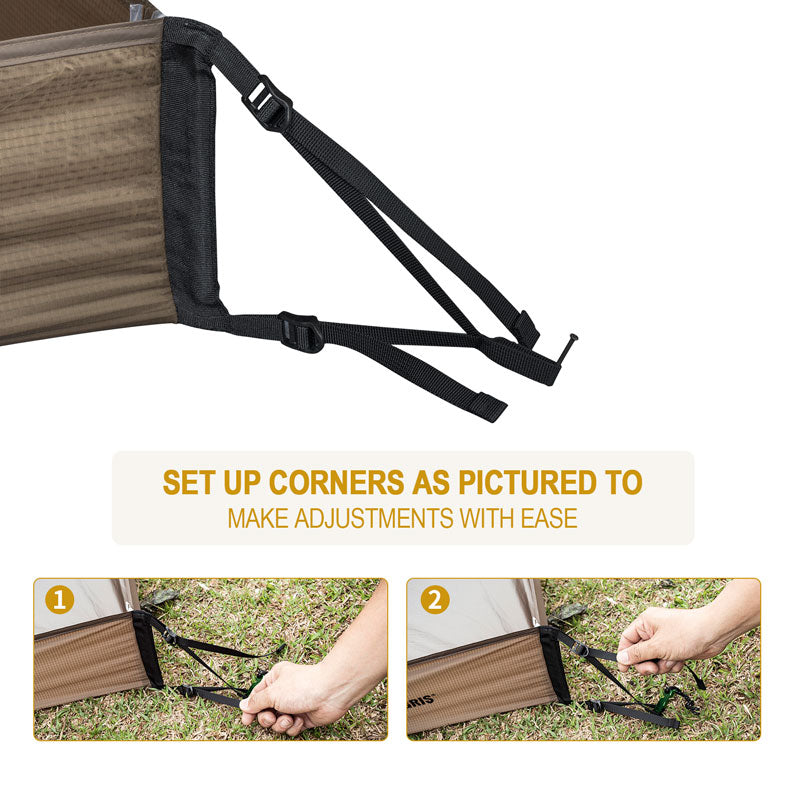 - Specially designed corners for a quick and taut setup that allows easy adjustments
