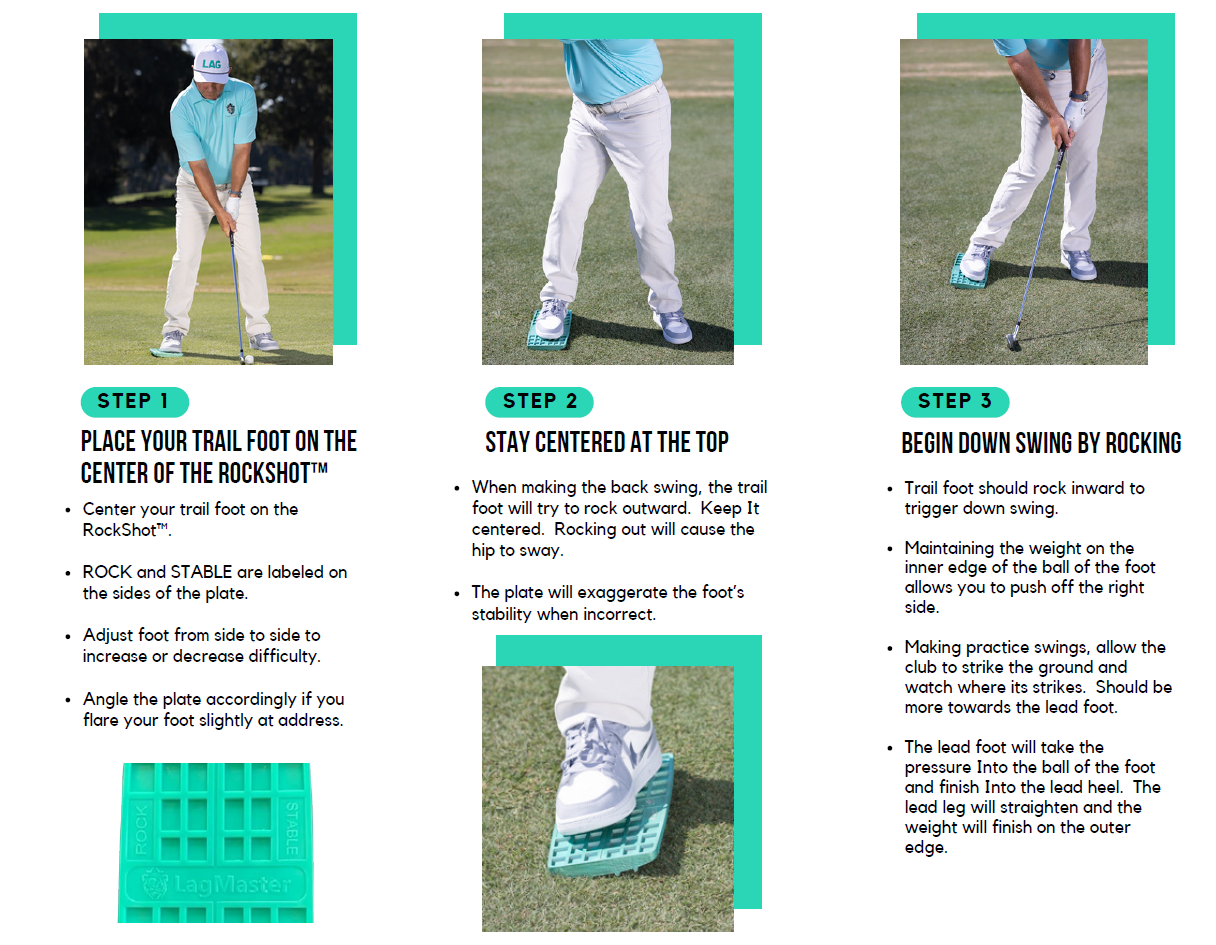 The RockShot™ from LagMaster is a vital tool for developing a stable trail leg and foot. If you struggle with swaying during the backswing, shifting your weight to kick off your downswing, or attaining a balanced finish, the RockShot will enhance your swing performance.