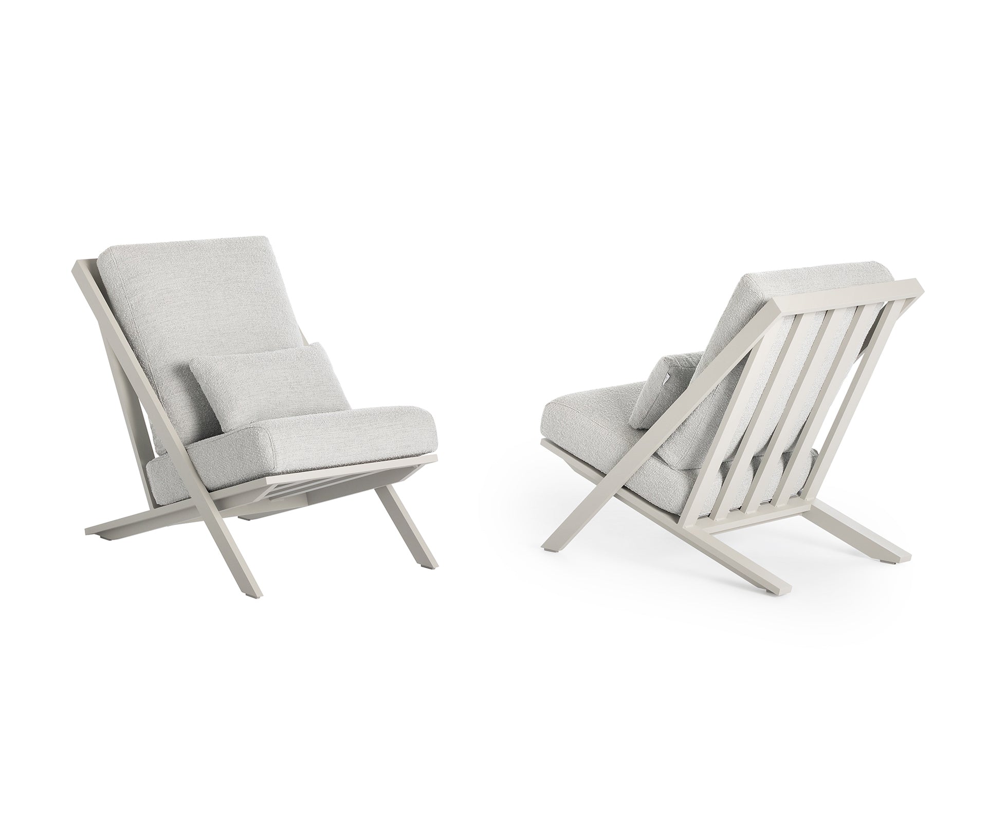 The TIMELESS relax club chair, along with the relax pouf, stands out for its elegance, originality and personality. It is a designer chair made of welded aluminium profiles available in different powder-coated colours: the sober classics, such as white, anthracite, sand, green, cement grey, greyish blue, bronze … as well as more daring tones. When combined with the various upholstery options, these colours can bring distinction and freshness to any outdoor space.