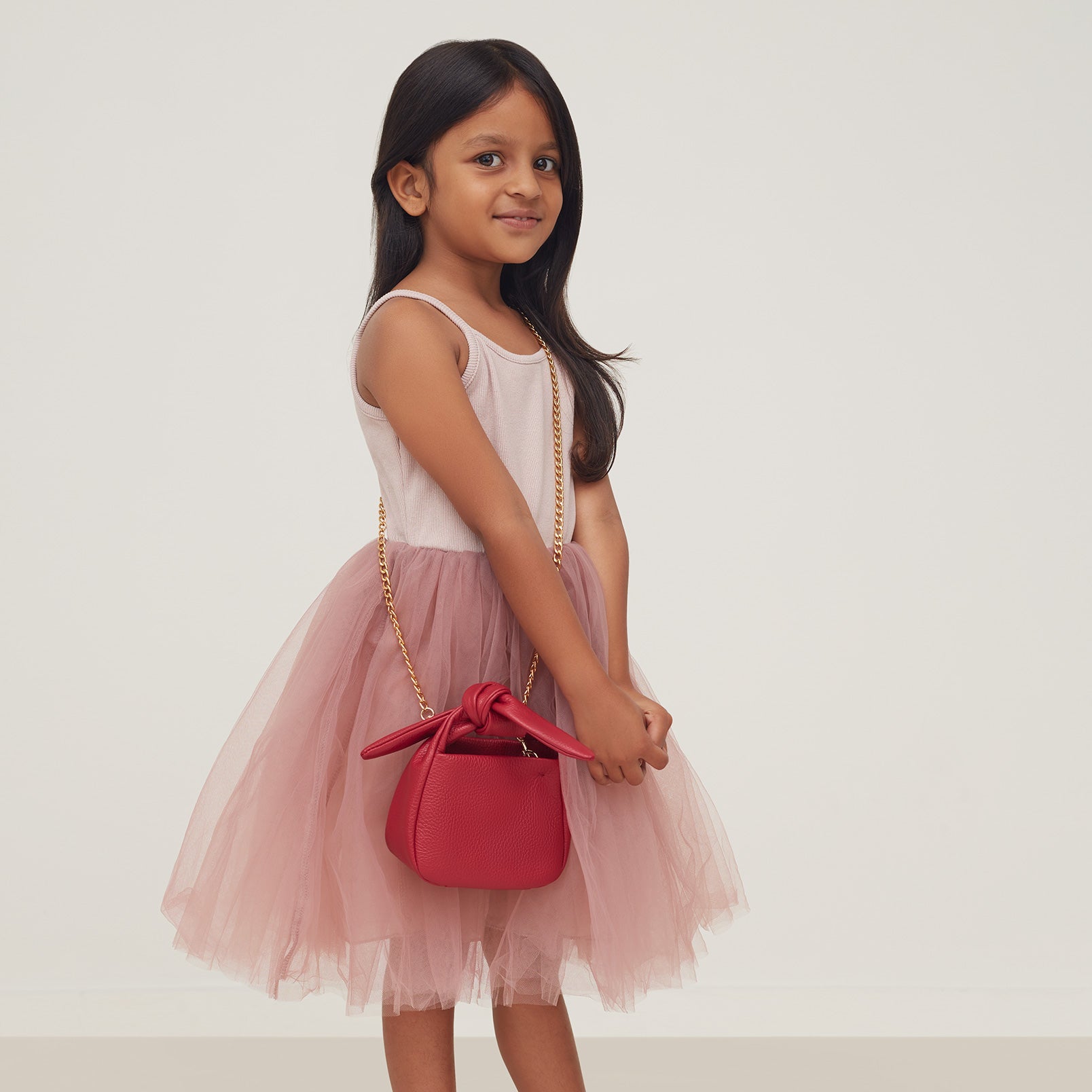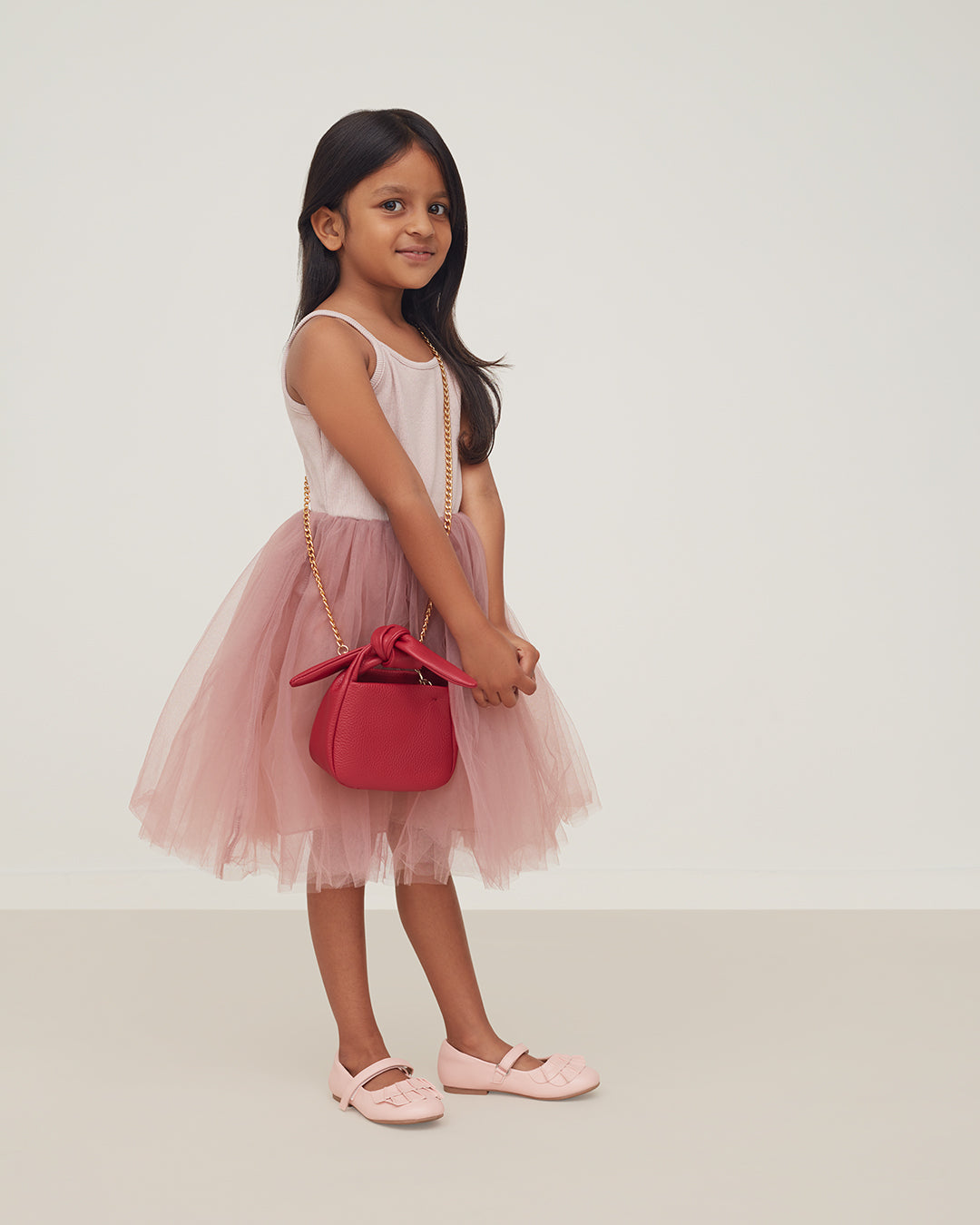 The little sister of our iconic Mini Bow Bag that is perfect for both adults and kids, made in Italy from soft pebbled leather.