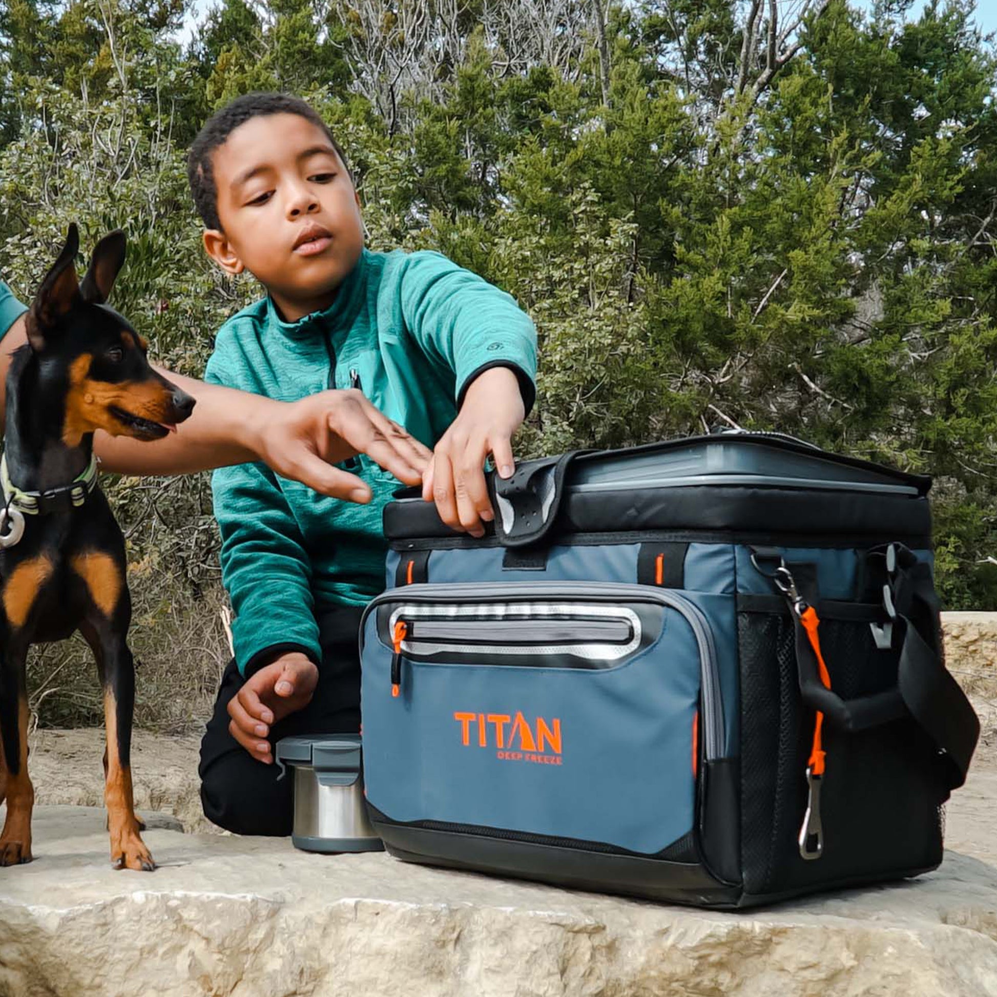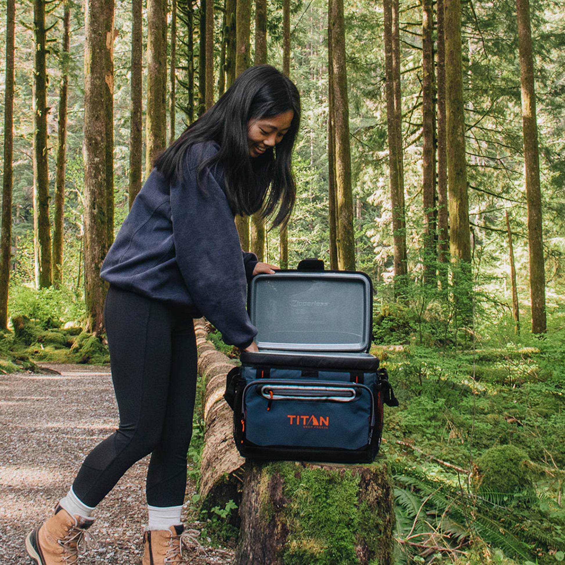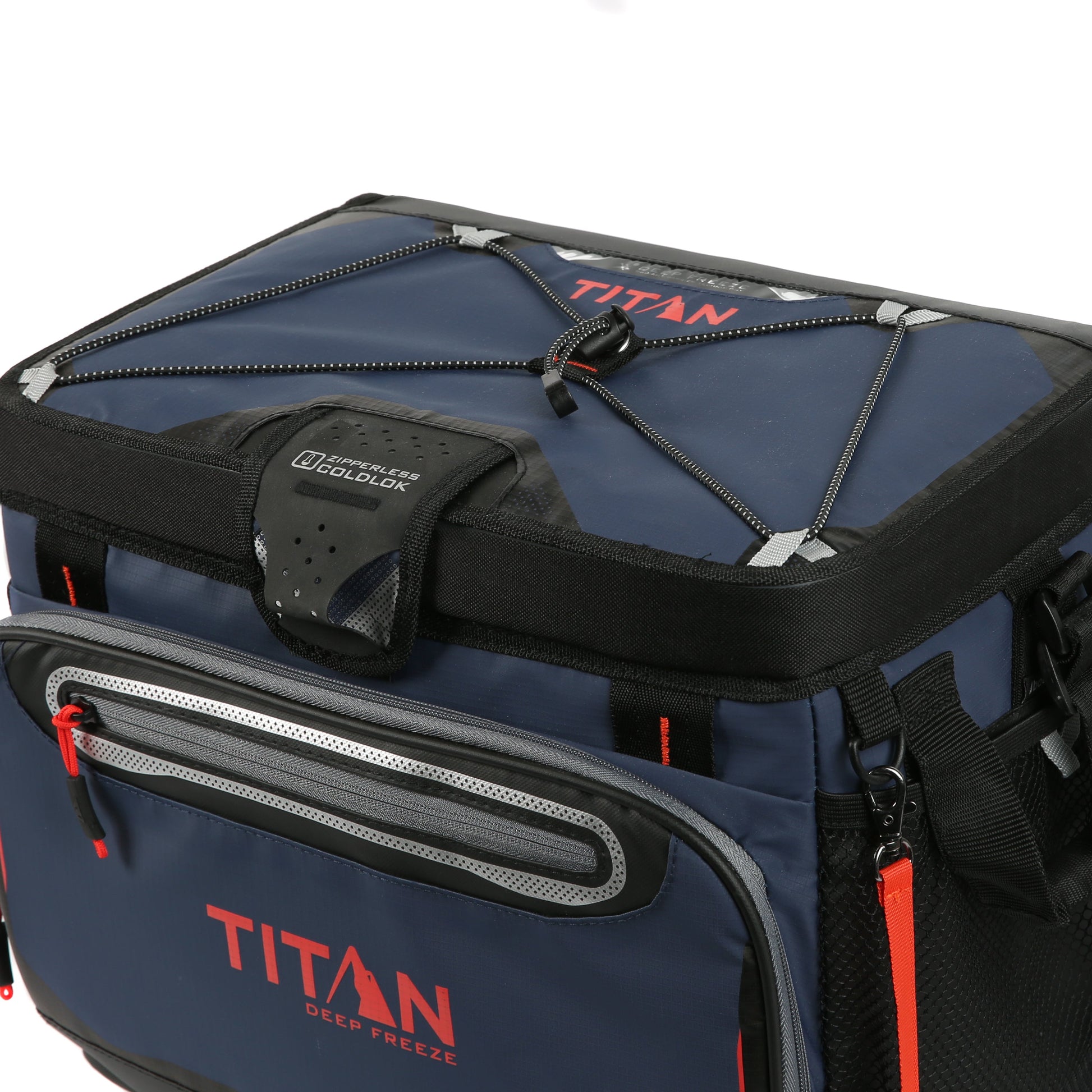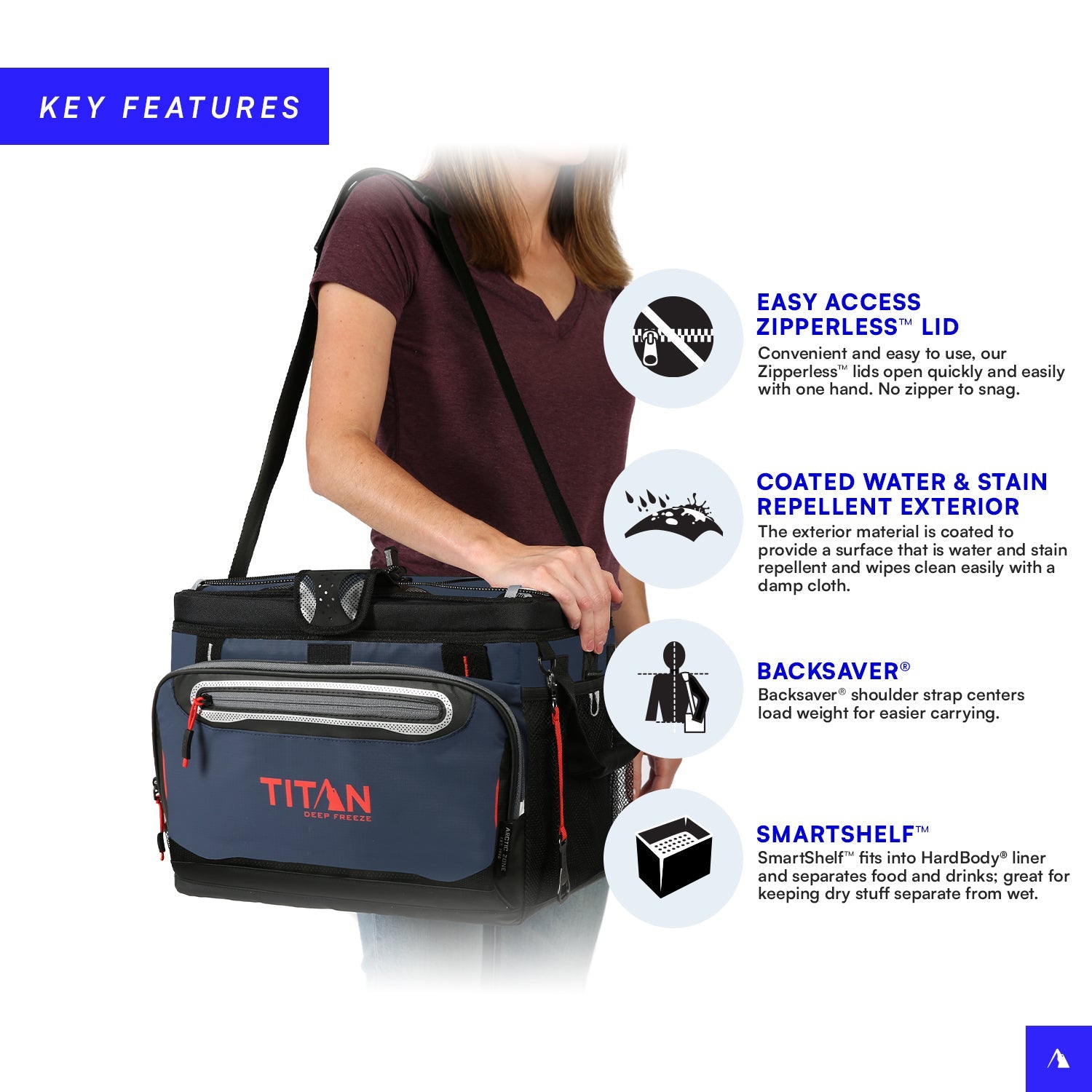 The Titan 30 Can Zipperless HardBody® Cooler keeps ice up to 3 days and includes a “flip-open”, patented Zipperless™ lid that provides quick access to food and drinks as well as an insulated front pocket.