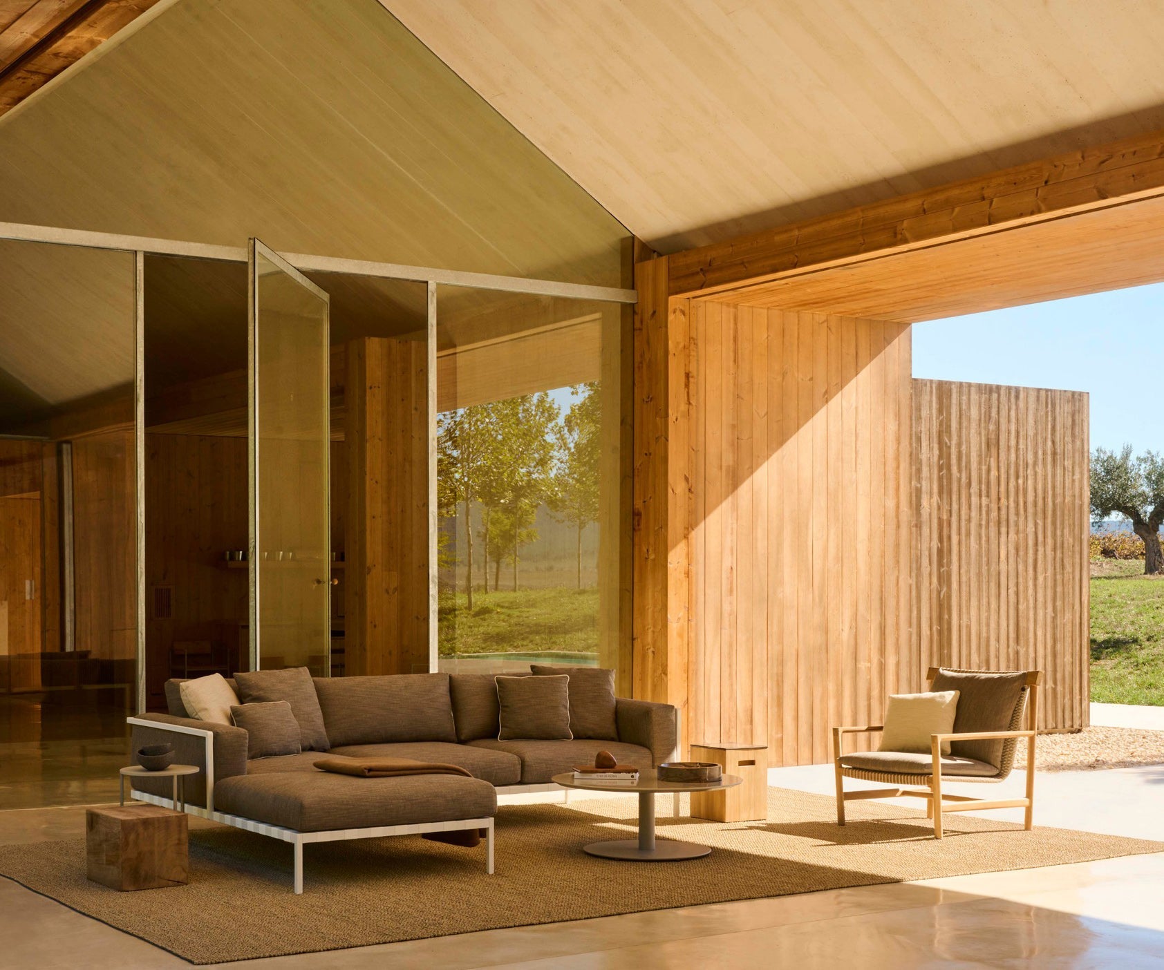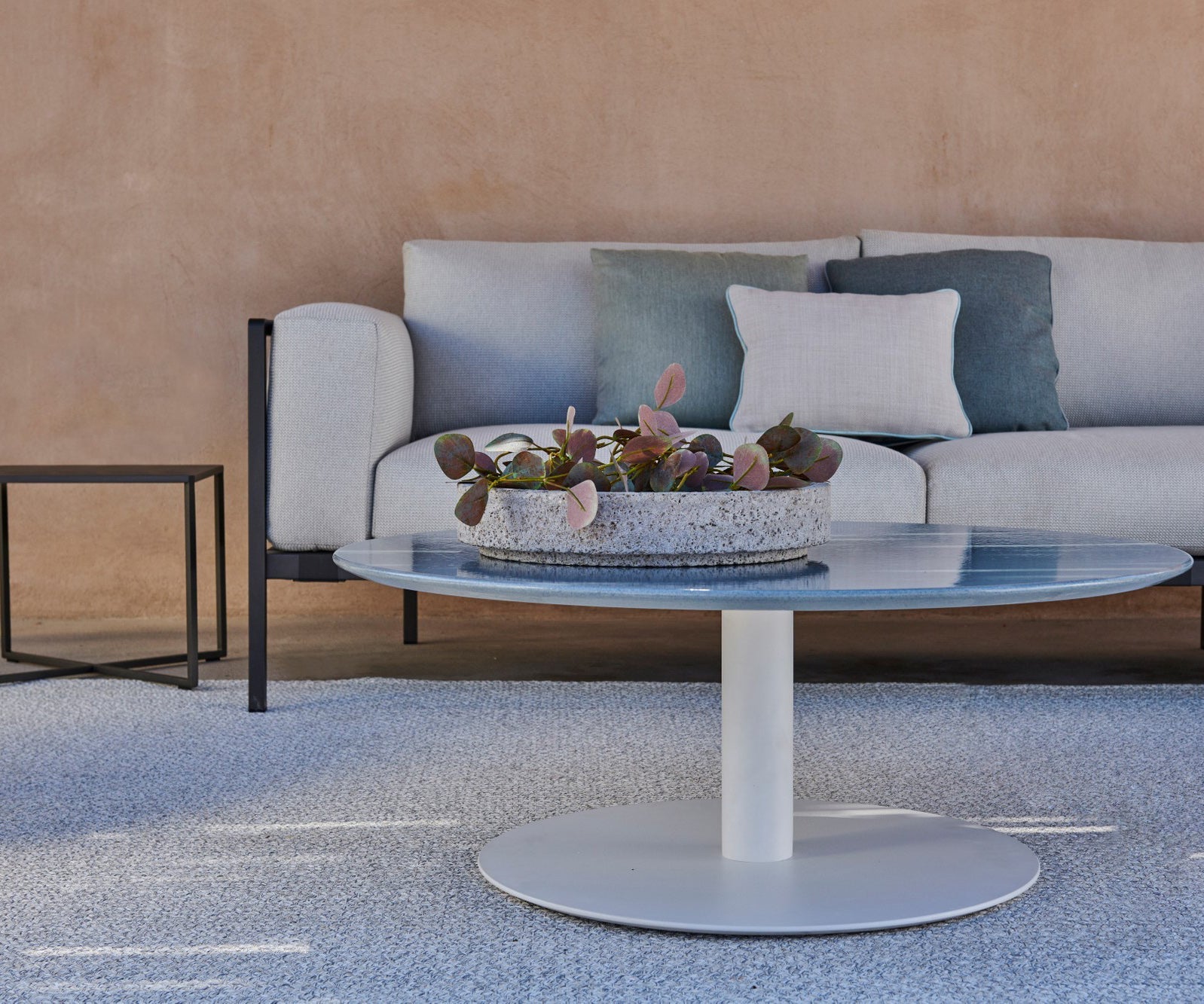 A subtle frame with curved armrests contrasts beautifully with the volume of the cushions, supported by a weave of wide textile straps. Timeless and elegant, the Natal Alu Sofa is an outdoor sofa that looks great on any patio. With nineteen different modules, two different seat depths, two available frame colours and more than 100 fabrics to choose from, the possibilities are endless. The aluminium frame is powder coated with ultra-durable, UV- and scratch resistant textured lacquer which provides a beautiful matte look. Special attention has been paid to the outdoor cushions, which have a ventilating, water-repellent filling, so they can easily handle a sudden downpour. The seams have an extra inside cover and the thread used to stitch the seams, swells when wet to further prevent water from penetrating.