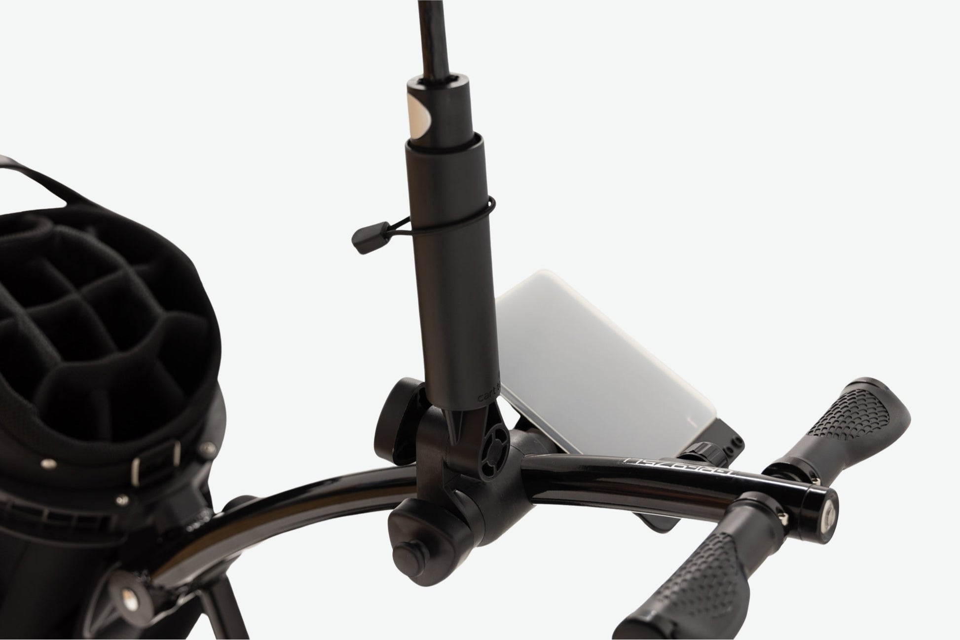 Replacement golf cart umbrella holder for most Cart Tek models. Choose From 1 7/8" diameter with extra button mount(for round frame models) or 2" diameter umbrella holders, Quick-Fit Style or the new Formula version. Attaches to the mount on your Electric golf trolley or Remote Control Golf Caddie.
