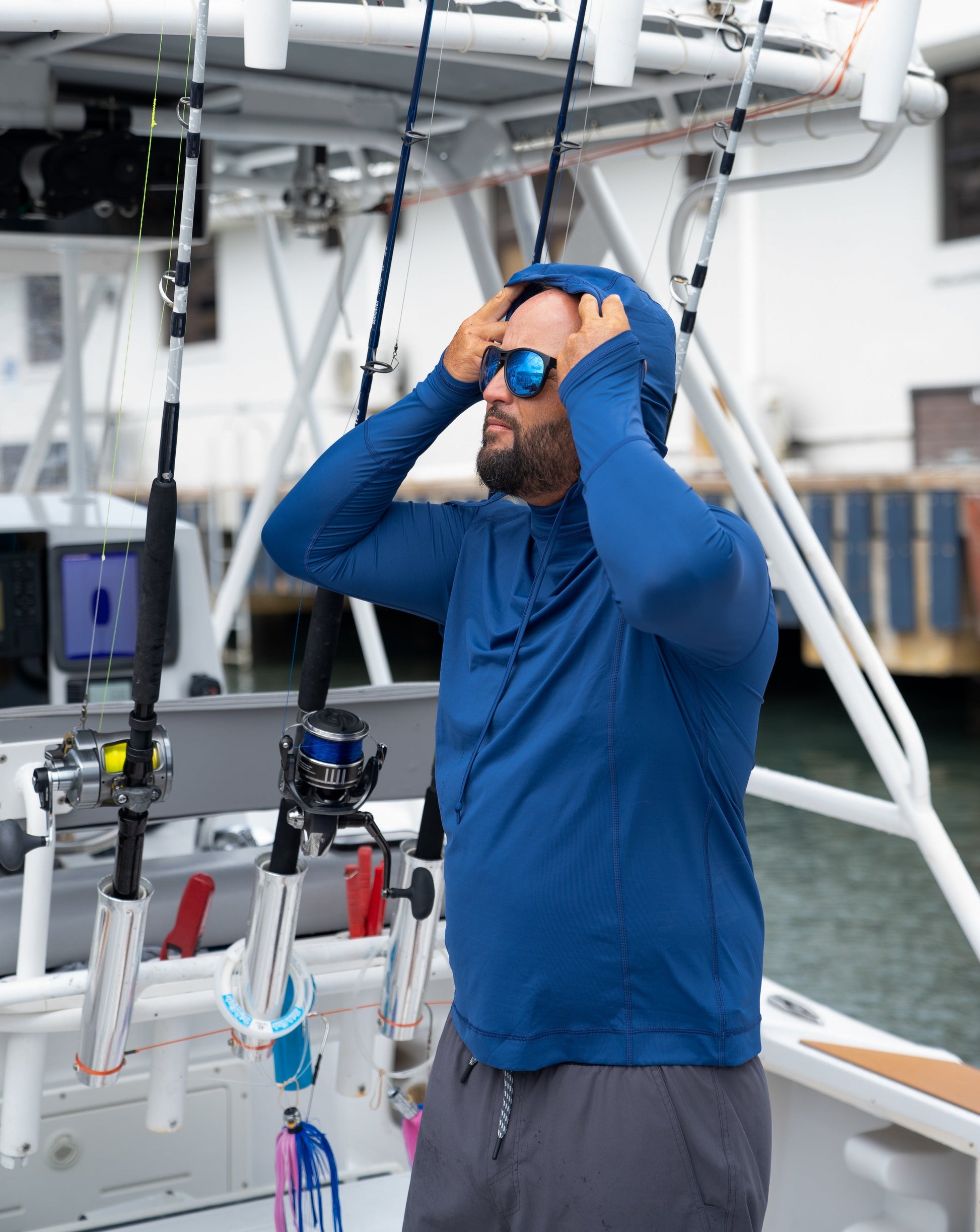 Take cover in the BloqUV sun protective unisex pullover hoodie shirt! The hood, full chest and head coverage, long sleeves and BloqTek SPF performance fabric offer wind and sun protection while keeping you cool. Our hoodie is perfect for fly fishing- a must have for fishing lovers.