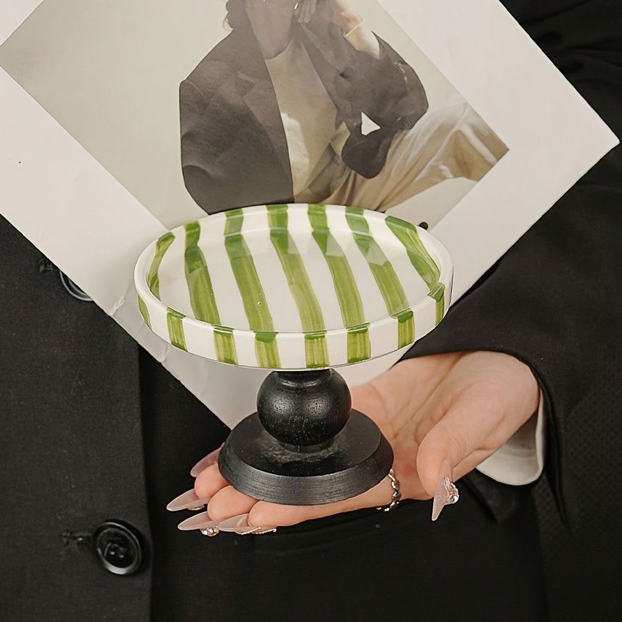 Overall, this vintage ceramic striped tray is not just a storage solution but a statement piece that enhances the elegance of any space.