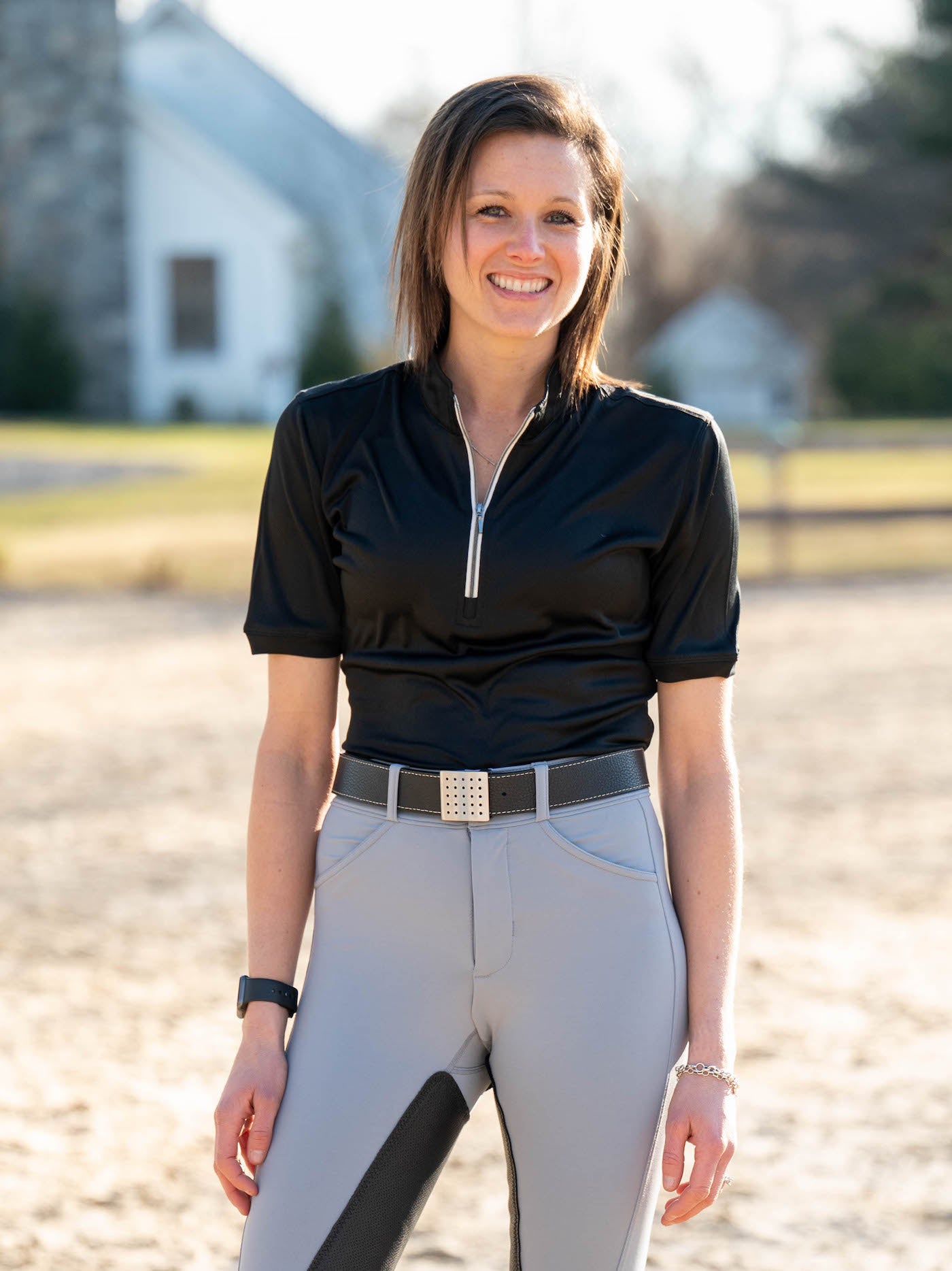 This UPF 50 sun shirt features lightweight fabric that is wicking, fast drying, breathable, and pill-resistant. This polished shirt is available in black and white to outfit with any breeches!