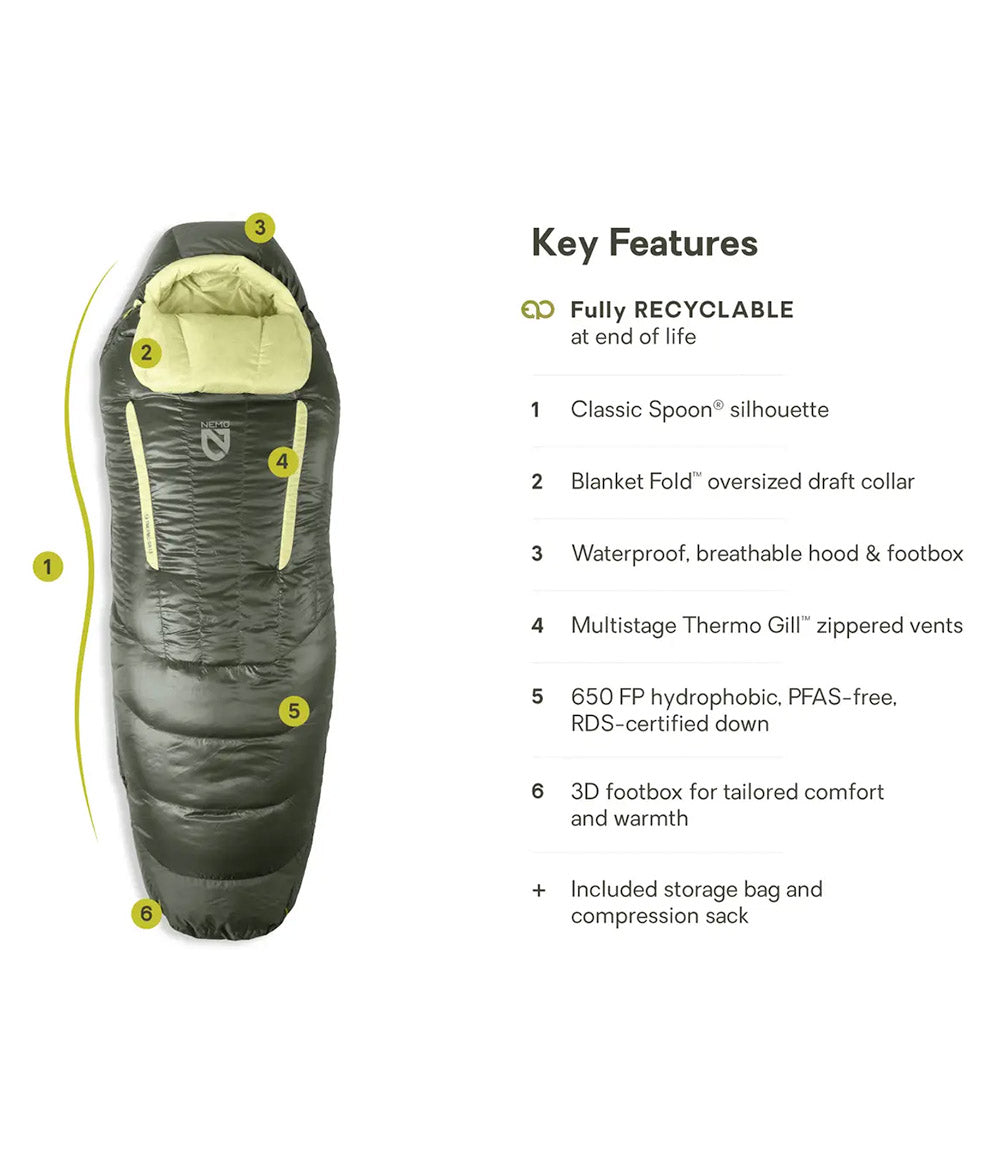Along with this suite of top features, Disco now boasts the purpose-driven Endless Promise® designation, meaning it was designed specifically to stay out of the landfill and on the trail, forever. With a shell manufactured fully from PET, this sleeping bag is 100% recyclable at the end of its life — just send it back to NEMO, and we’ll handle the rest.