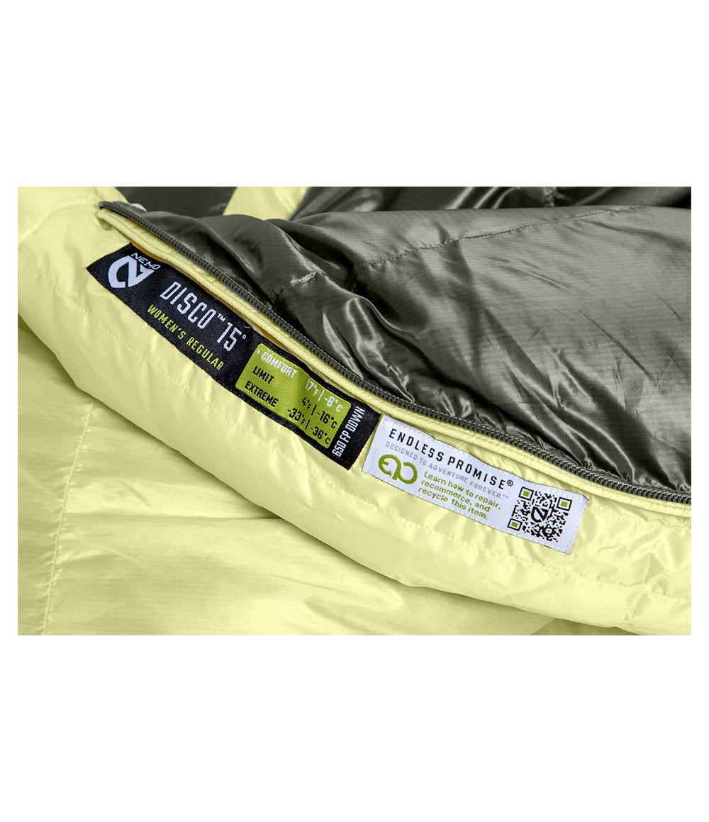 Along with this suite of top features, Disco now boasts the purpose-driven Endless Promise® designation, meaning it was designed specifically to stay out of the landfill and on the trail, forever. With a shell manufactured fully from PET, this sleeping bag is 100% recyclable at the end of its life — just send it back to NEMO, and we’ll handle the rest.