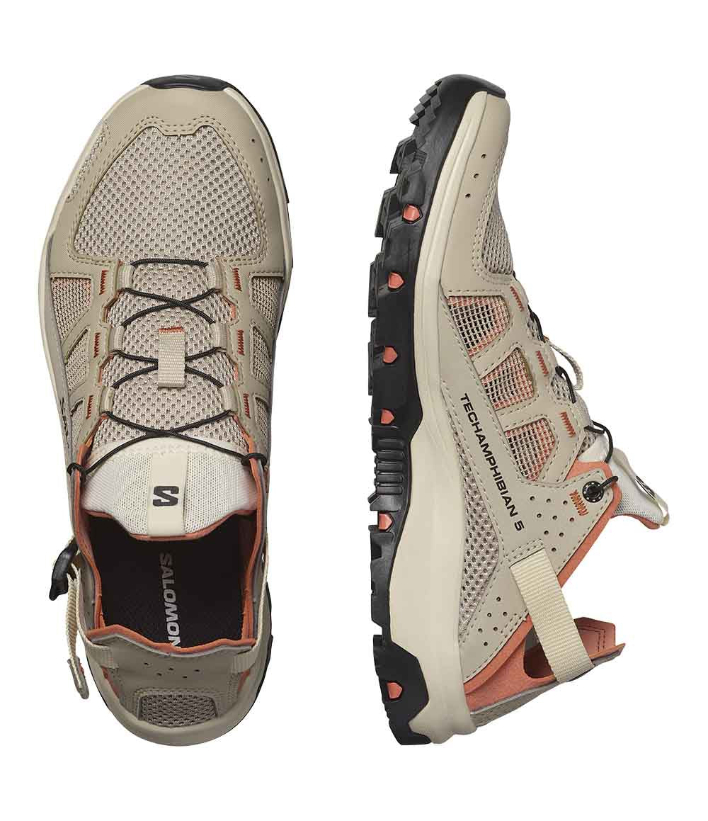 Fully committed to wet and wild exploits, Techamphibian 5’s reinforced toe cap and fully stitched construction will keep your feet protected while its sticky outsole ensures grip on slippery terrain. With a collapsible heel for versatility and ease of use, and quick drying, breathable materials on the upper.