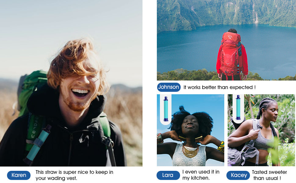 The Water Filter Straw is the safe way to drinking healthy water anywhere, and at anytime whether your camping, hiking, backpacking, climbing, fishing, hunting, or include it into your survival kit.