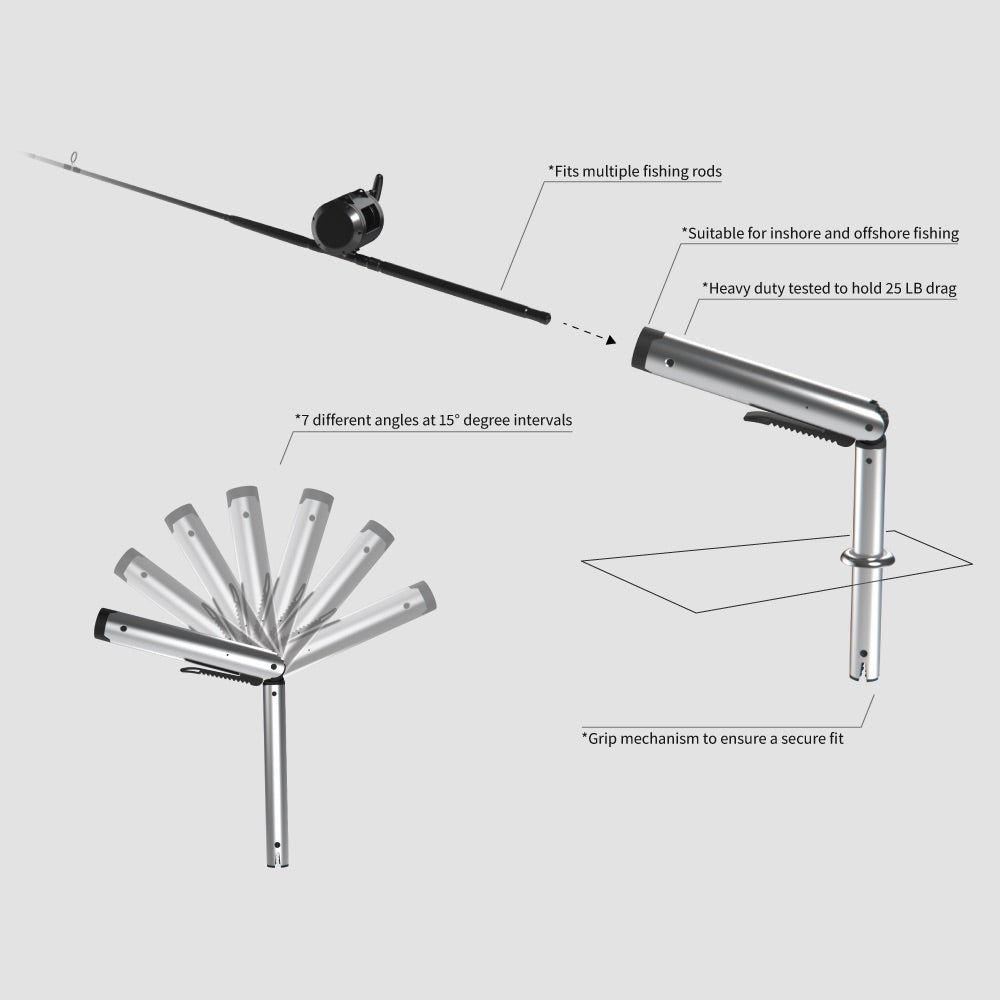 - A secure fit grip mechanism adapts to any orientation in the rod holder