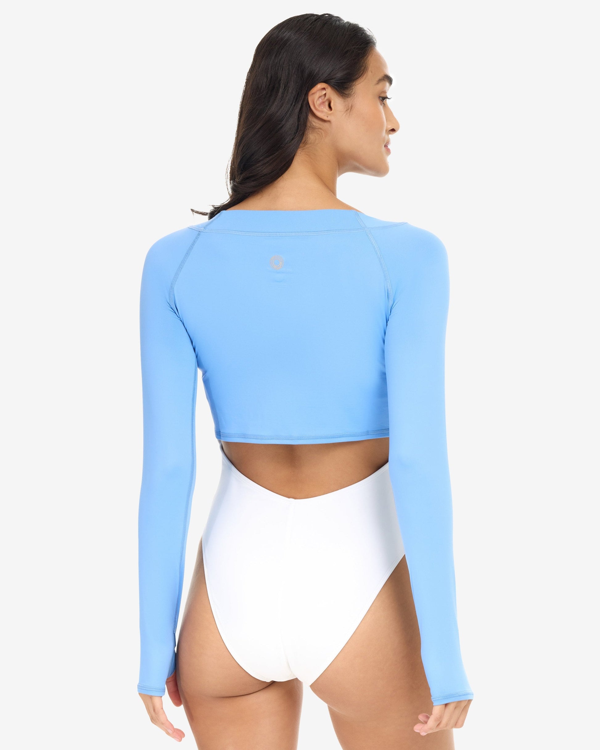 Reach for the BloqUV UPF crop shirt when you want sun protection for your arms and shoulders without adding bulk. This midriff top was designed to be worn over your favorite tank, sun dress or swimsuit to provide superior SPF sun protection while keeping cool. Perfect for activities on and off the water: running, biking, swimming, paddle boarding, fishing, beach tennis, pickle ball, tennis, golf and sight-seeing. Enjoy your multi-use capri sun shirt for any activity.